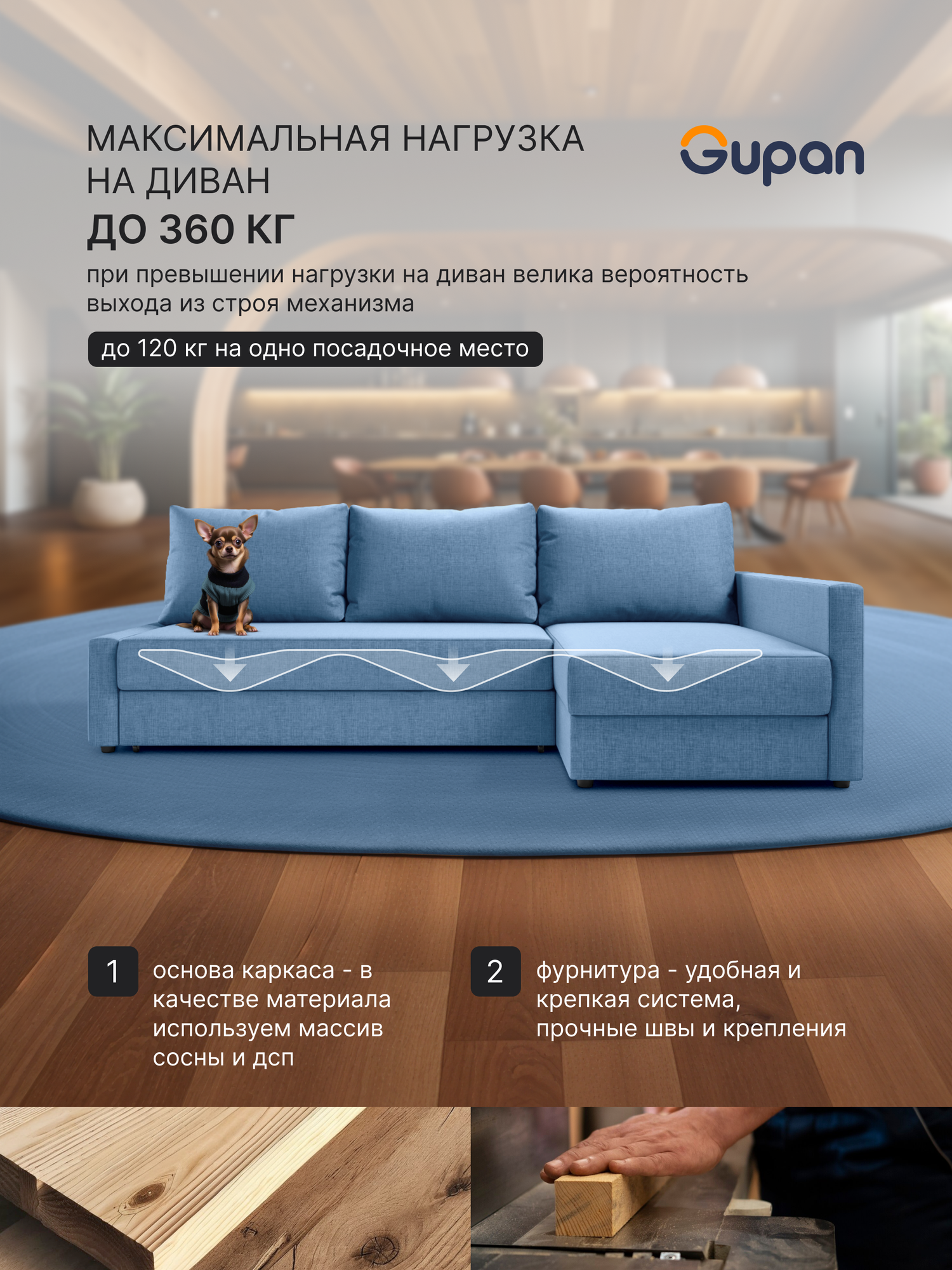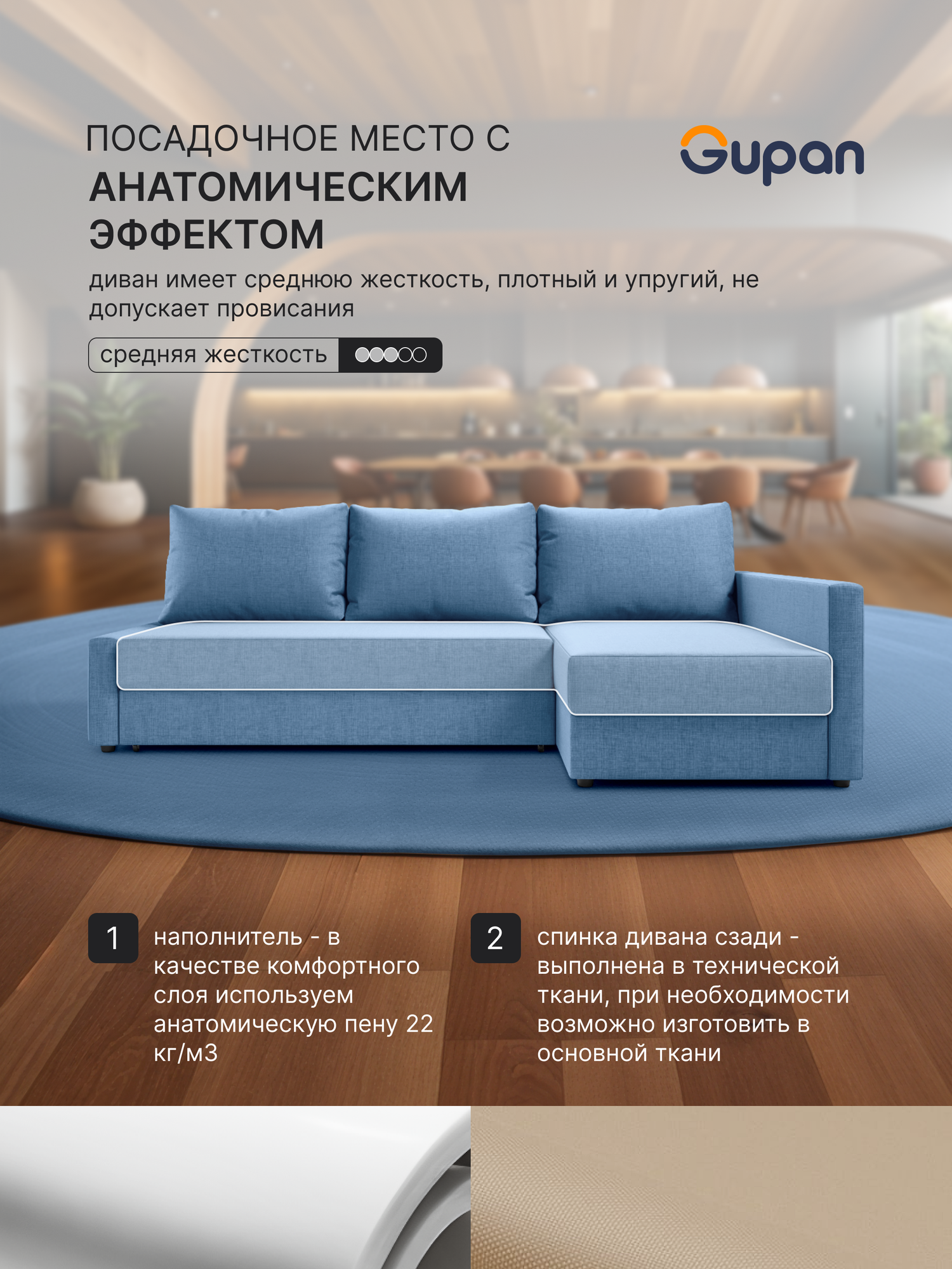 СохранитьДиван угловой Gupan Фрисби Рогожка Savana Blue, раскладной, механизм дельфин, беспружинный, с ящиком для белья интересное: