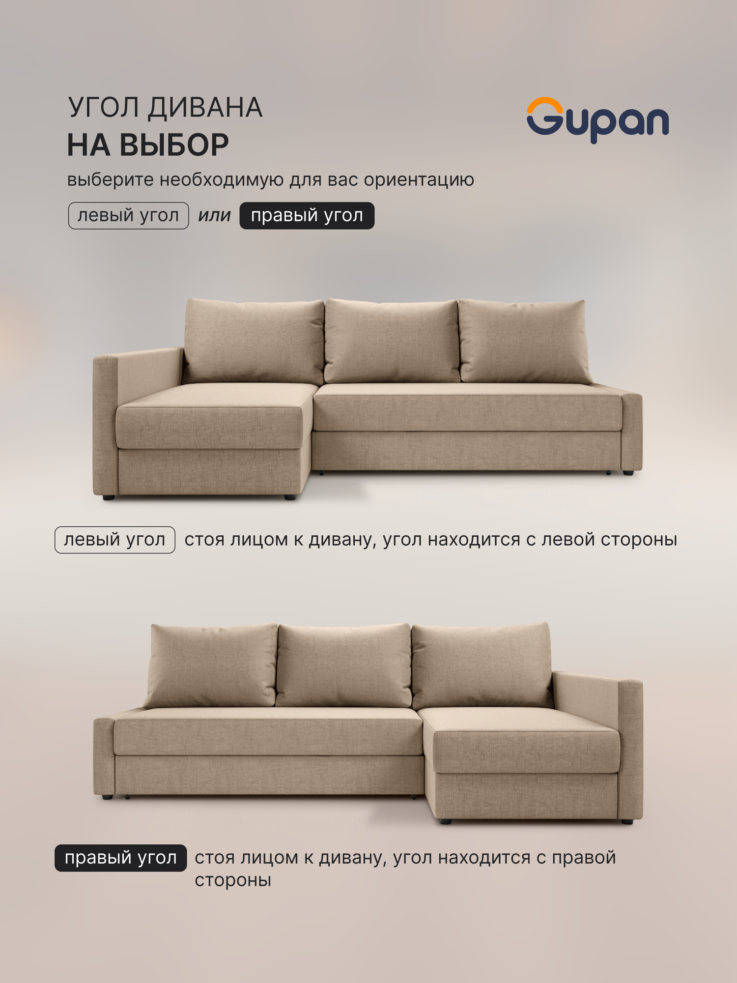Купить Диван угловой Gupan Фрисби Рогожка Savana Beige, раскладной, механизм дельфин, беспружинный, с ящиком для белья