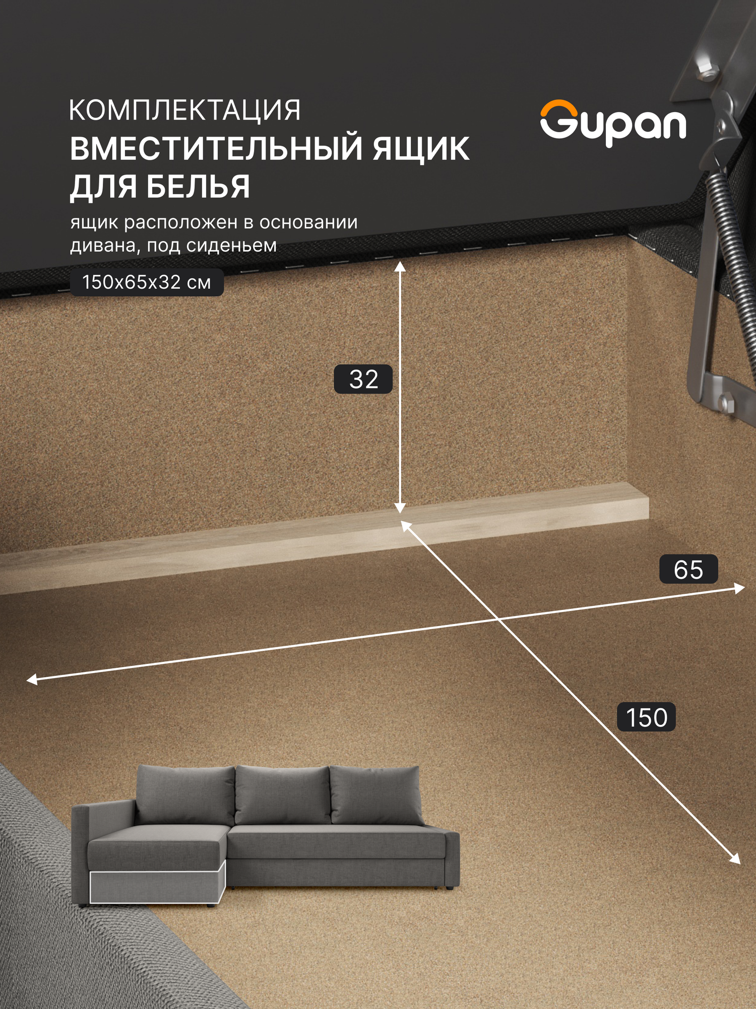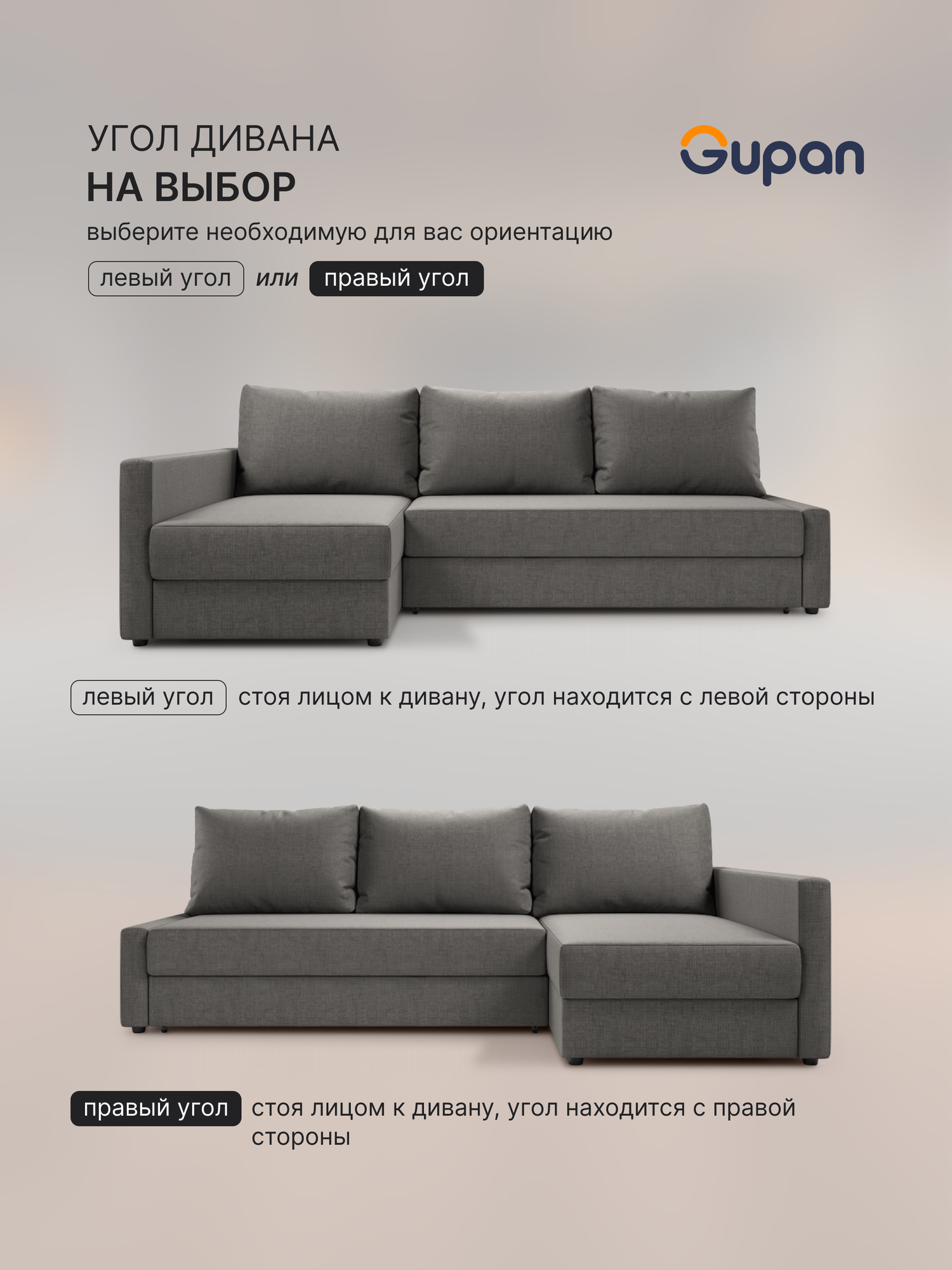 Купить Диван угловой Gupan Фрисби Рогожка Savana Grey, раскладной, механизм дельфин, беспружинный, с ящиком для белья