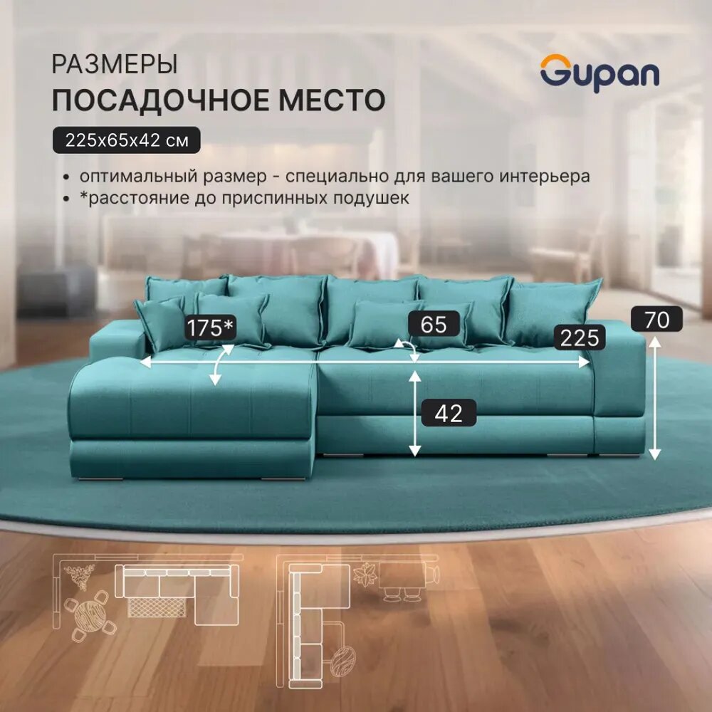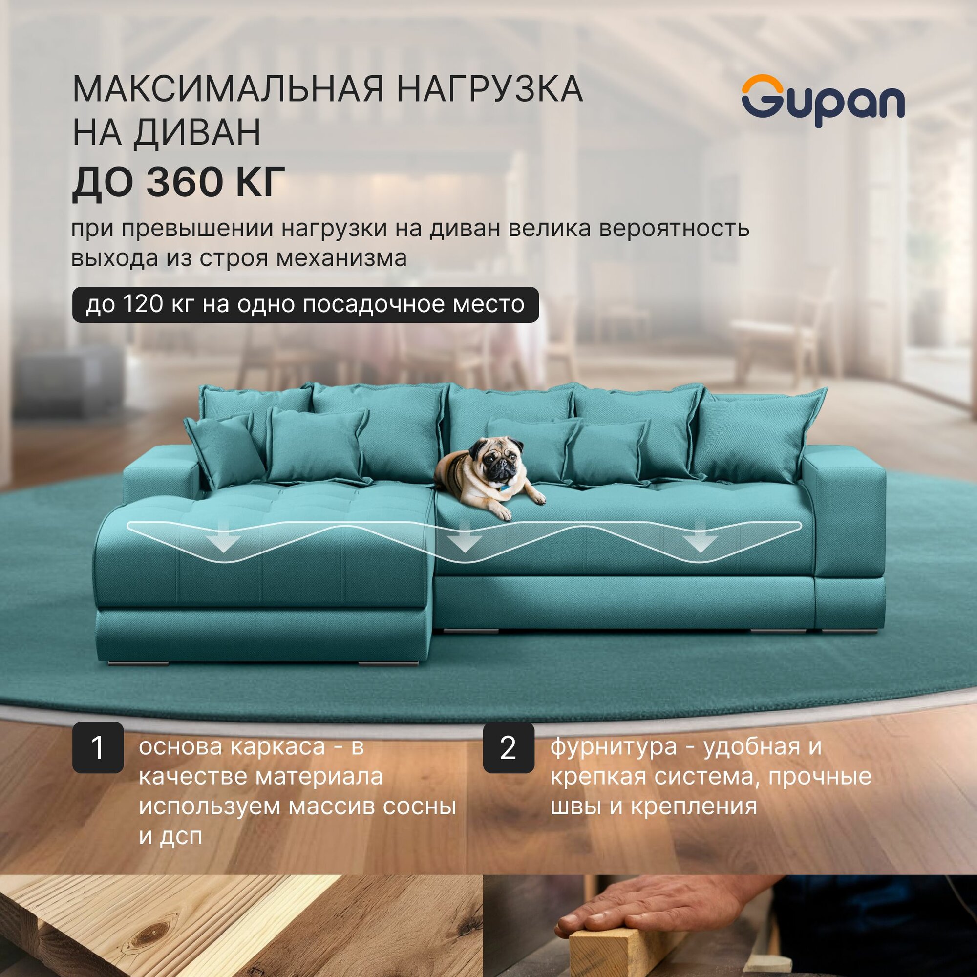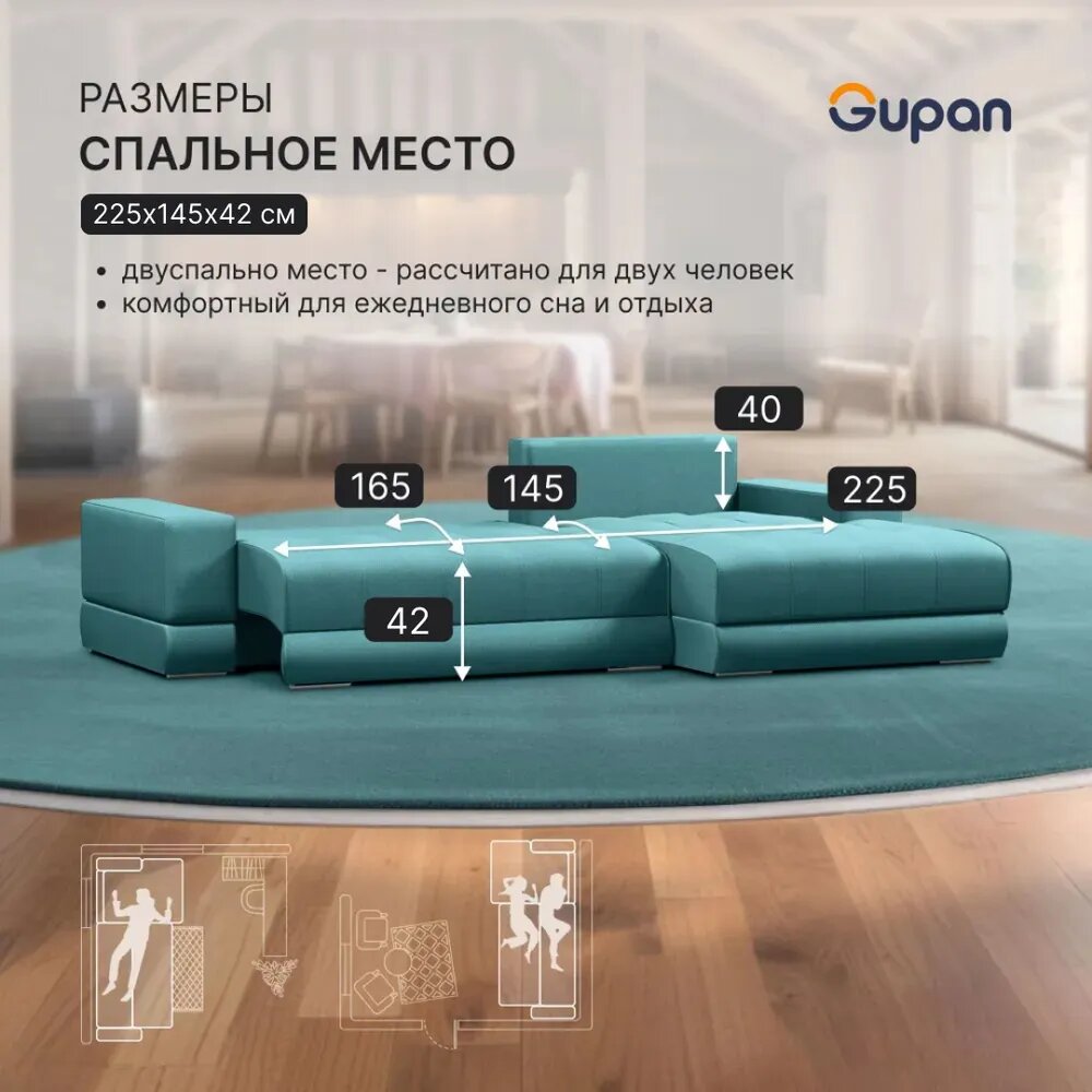 СохранитьДиван угловой Gupan Olis Велюр Amigo Lagoon, раскладной, механизм еврокнижка, беспружинный, с ящиком для белья интересное: