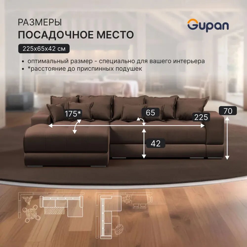 СохранитьДиван угловой Gupan Olis Велюр Amigo Coffee, раскладной, механизм еврокнижка, беспружинный, с ящиком для белья интересное: