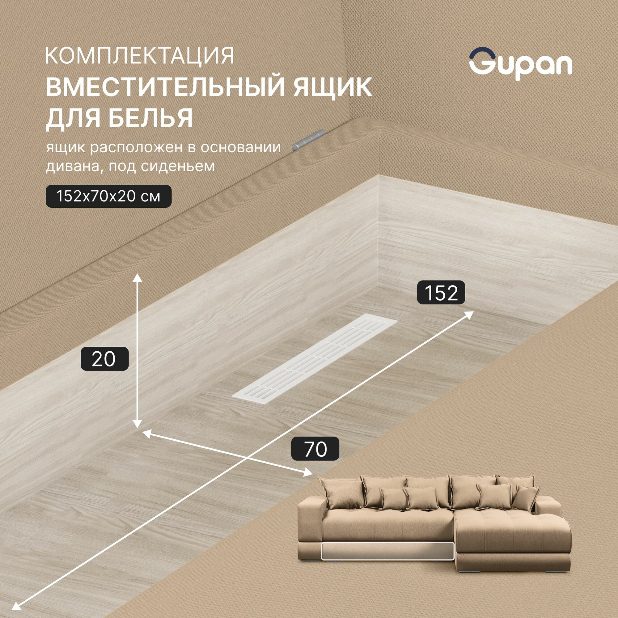 Купить Диван угловой Gupan Olis Велюр Amigo Beige, раскладной, механизм еврокнижка, беспружинный, с ящиком для белья