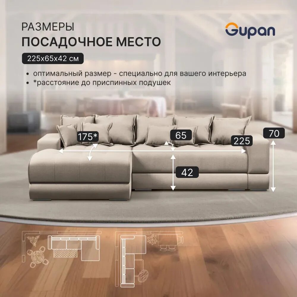 СохранитьДиван угловой Gupan Olis Велюр Amigo Cream, раскладной, механизм еврокнижка, беспружинный, с ящиком для белья интересное: