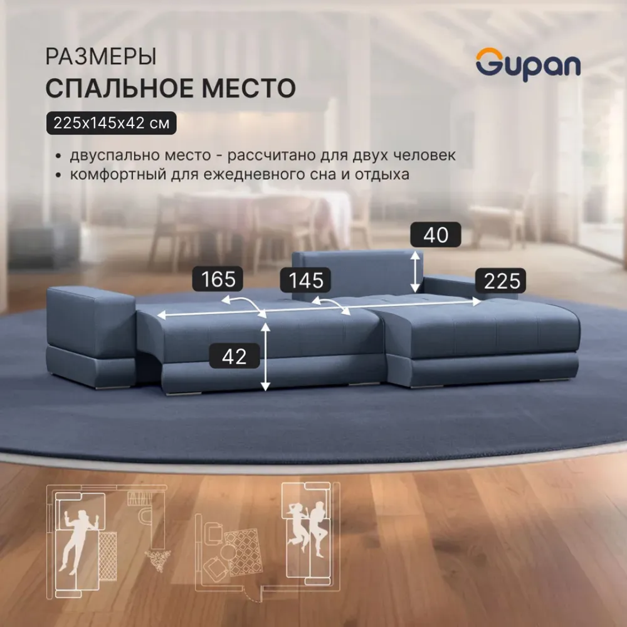 СохранитьДиван угловой Gupan Olis Велюр Amigo Navy, раскладной, механизм еврокнижка, беспружинный, с ящиком для белья интересное: