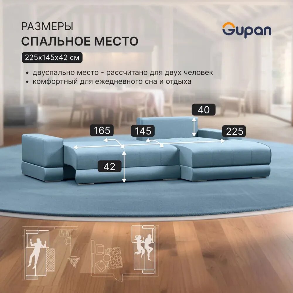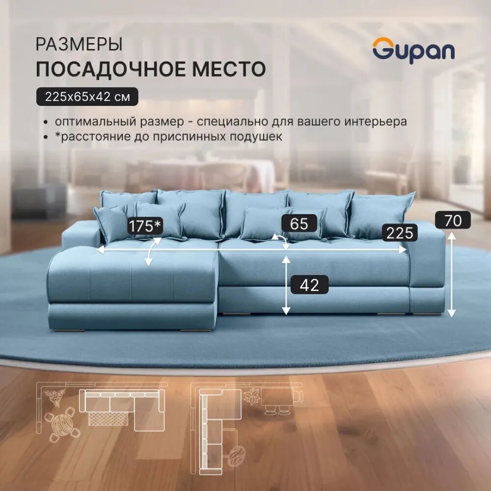 СохранитьДиван угловой Gupan Olis Велюр Amigo Blue, раскладной, механизм еврокнижка, беспружинный, с ящиком для белья интересное: