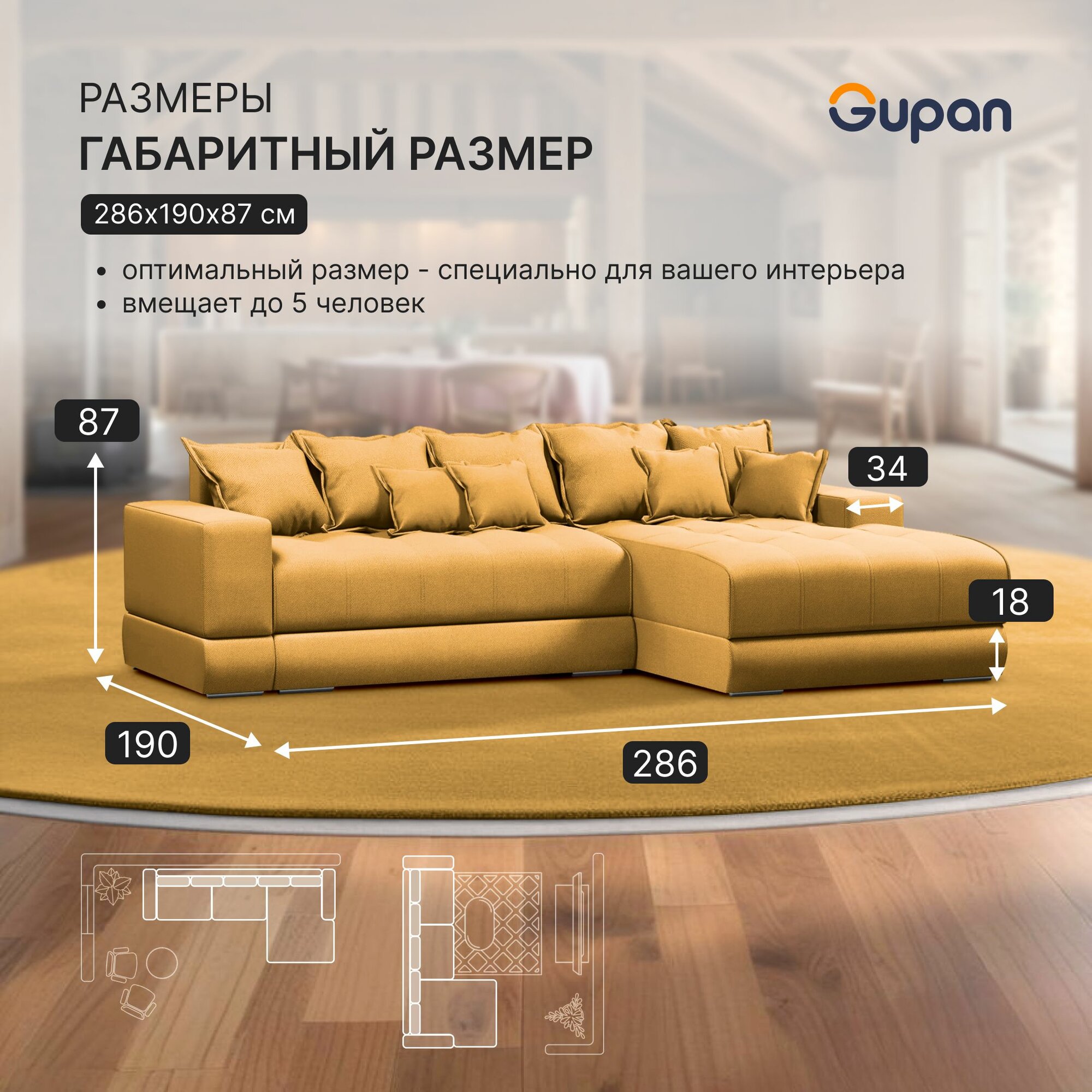 СохранитьДиван угловой Gupan Olis Велюр Amigo Yellow, раскладной, механизм еврокнижка, беспружинный, с ящиком для белья интересное: