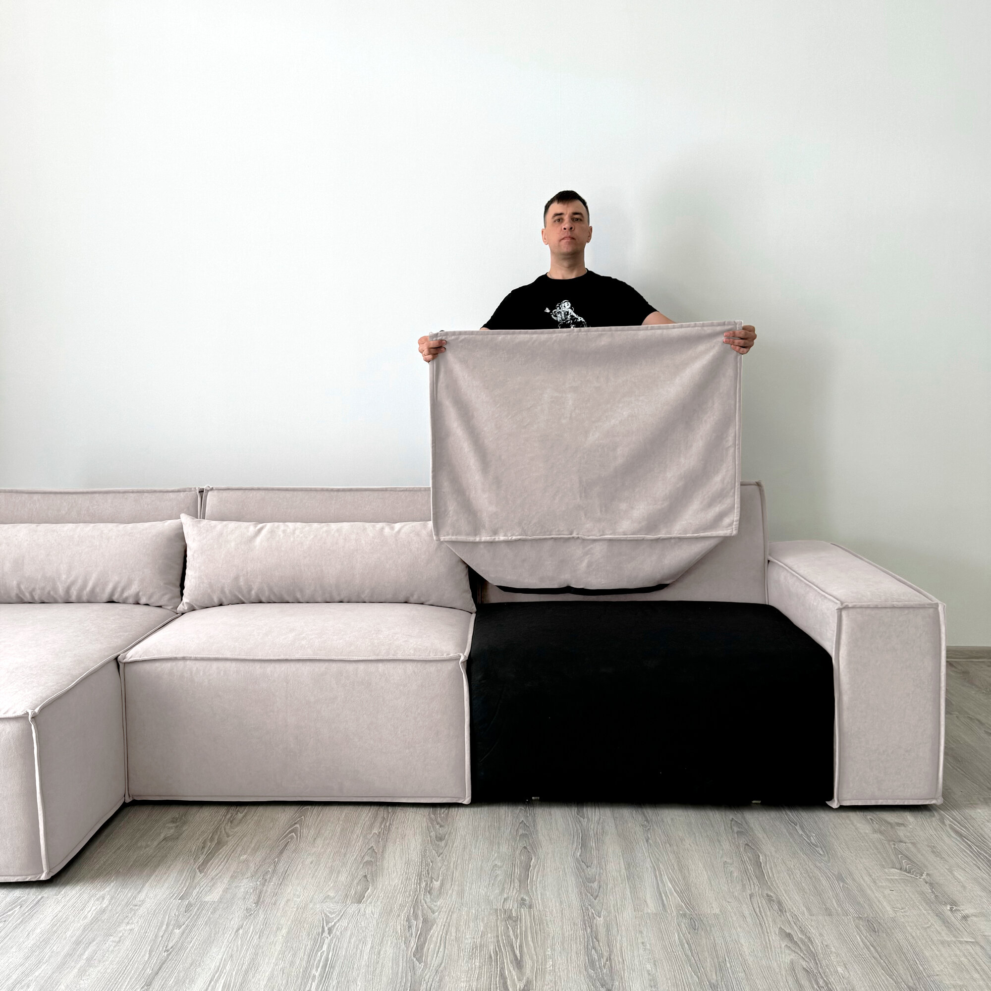 Диван-кровать Redsofa Пикассо 360 см Бежевый waterproof. Раскладной угловой диван со съемными чехлами, для дома и офиса.