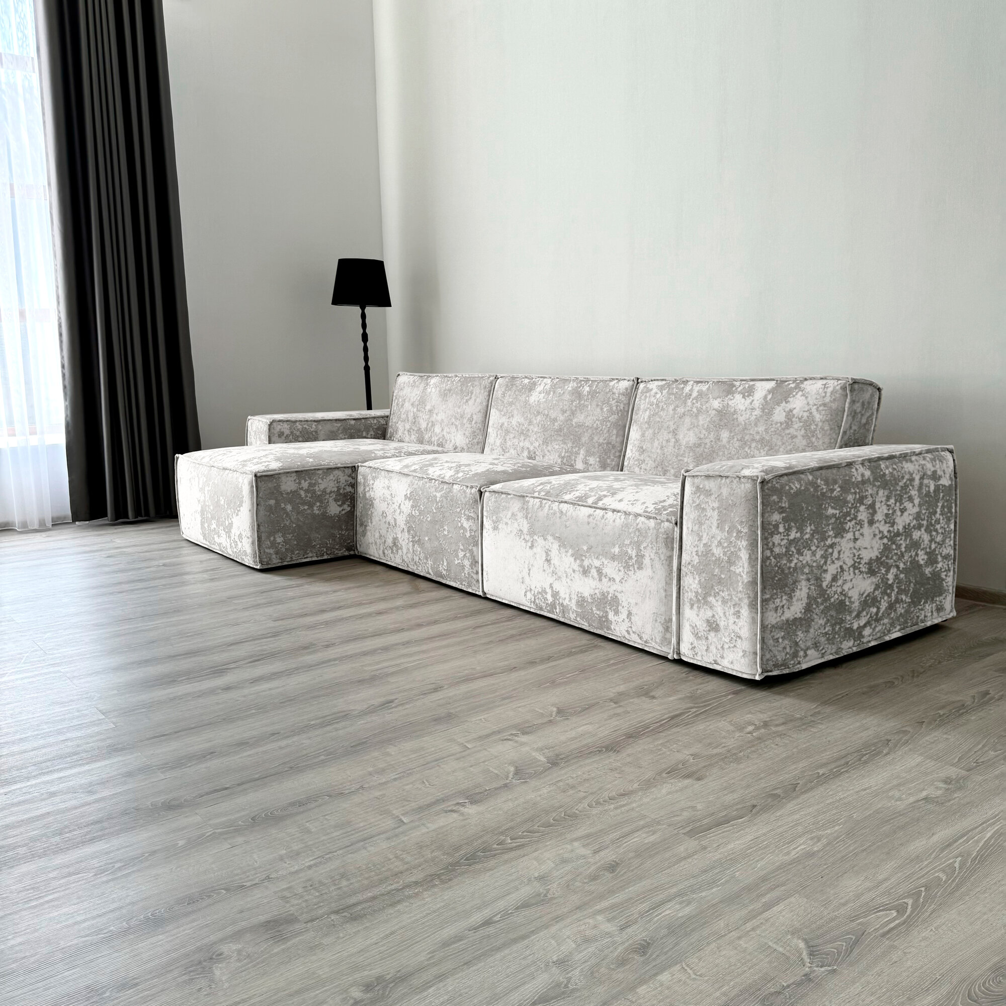 Диван-кровать Redsofa Пикассо 360 см светло-серый Teddi. Раскладной угловой диван со съемными чехлами, для дома и офиса.