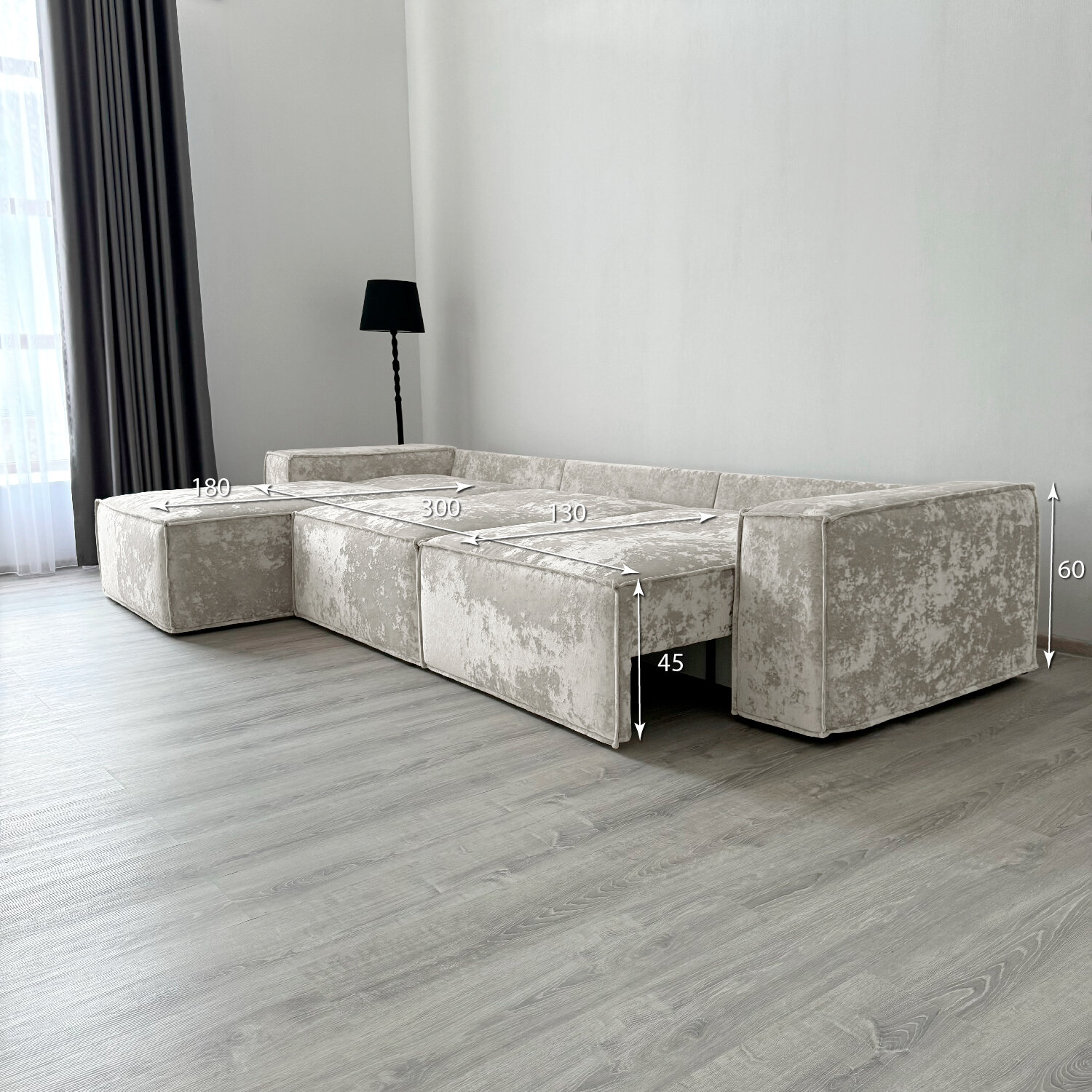 Диван-кровать Redsofa Пикассо 360 см Бежевый waterproof. Раскладной угловой диван со съемными чехлами, для дома и офиса.