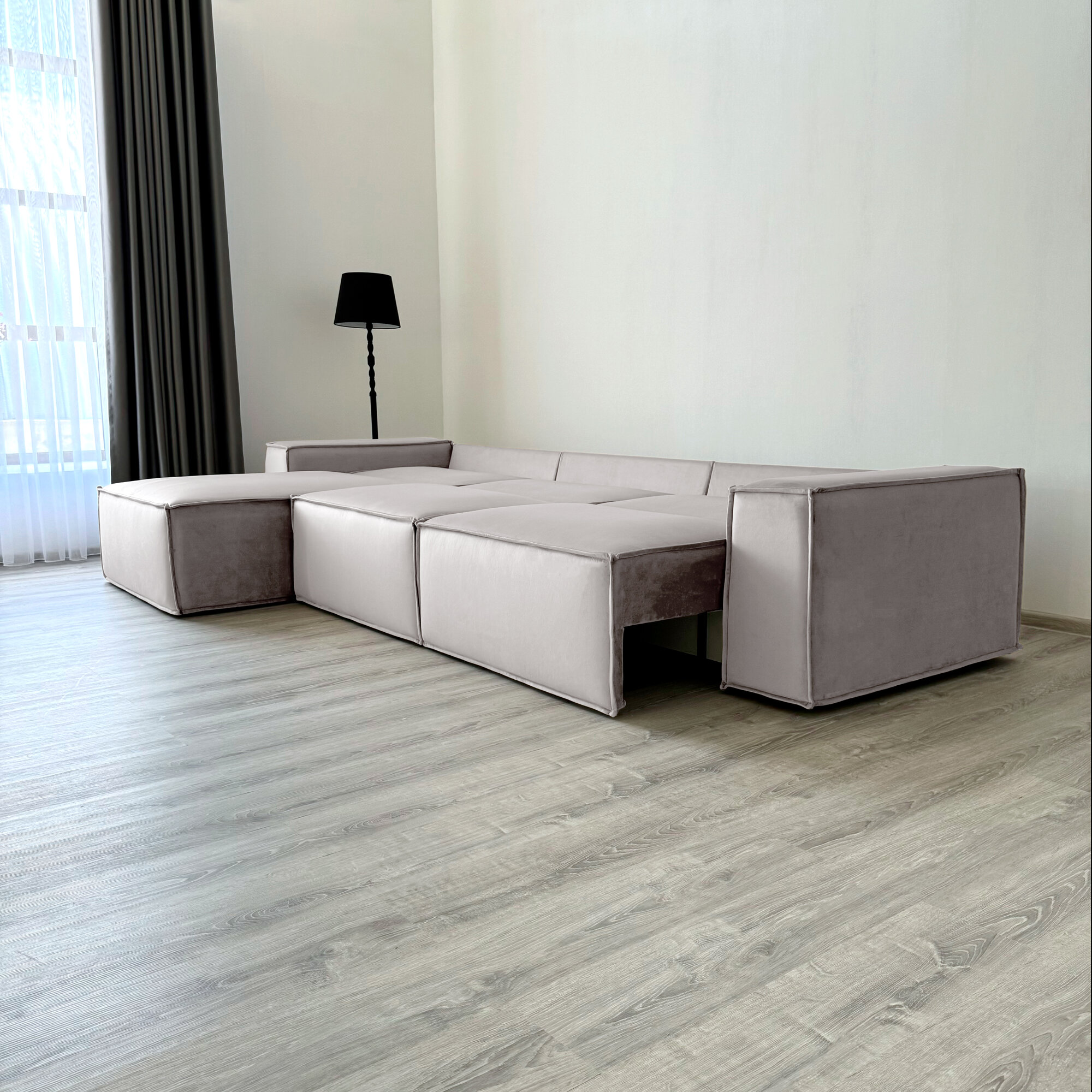 Диван-кровать Redsofa Пикассо 360 см светло-серый Teddi. Раскладной угловой диван со съемными чехлами, для дома и офиса.