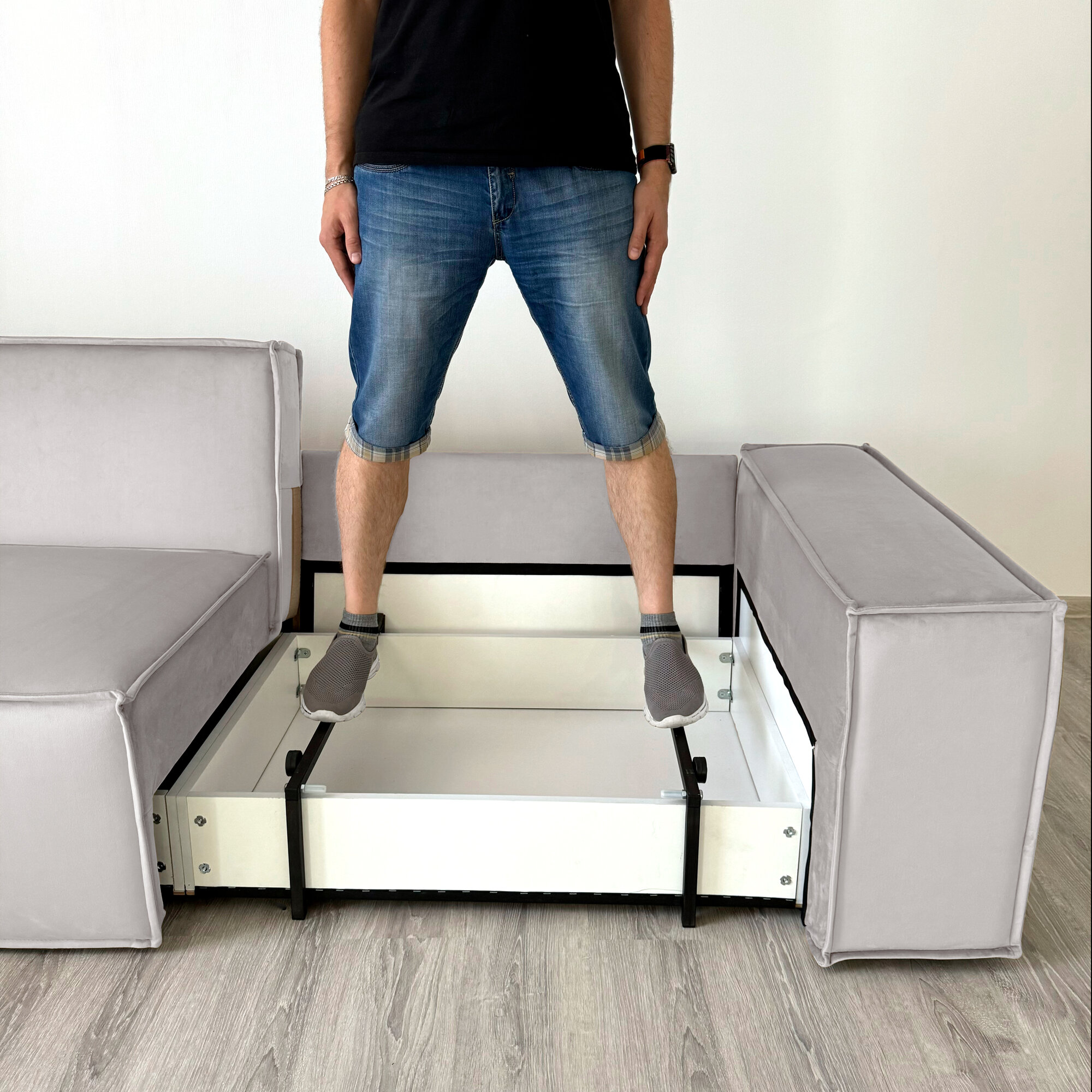 Диван-кровать Redsofa Пикассо 360 см серый waterproof. Раскладной угловой диван со съемными чехлами, для дома и офиса.