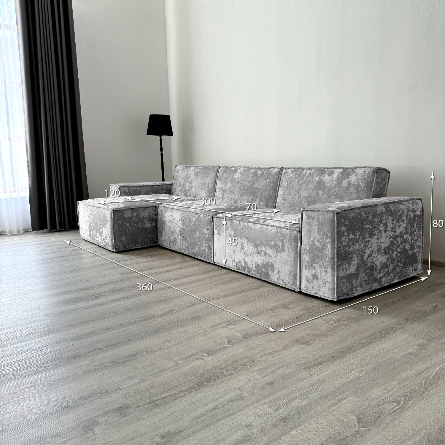 Диван-кровать Redsofa Пикассо 360 см серый waterproof. Раскладной угловой диван со съемными чехлами, для дома и офиса.