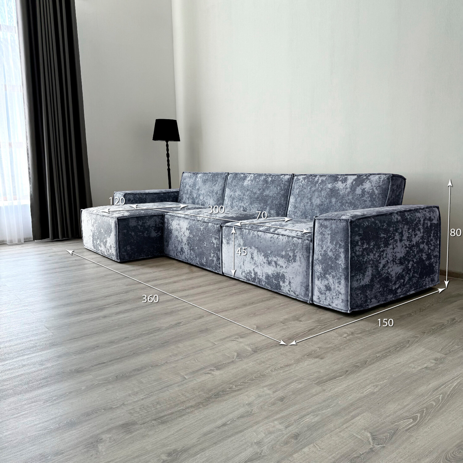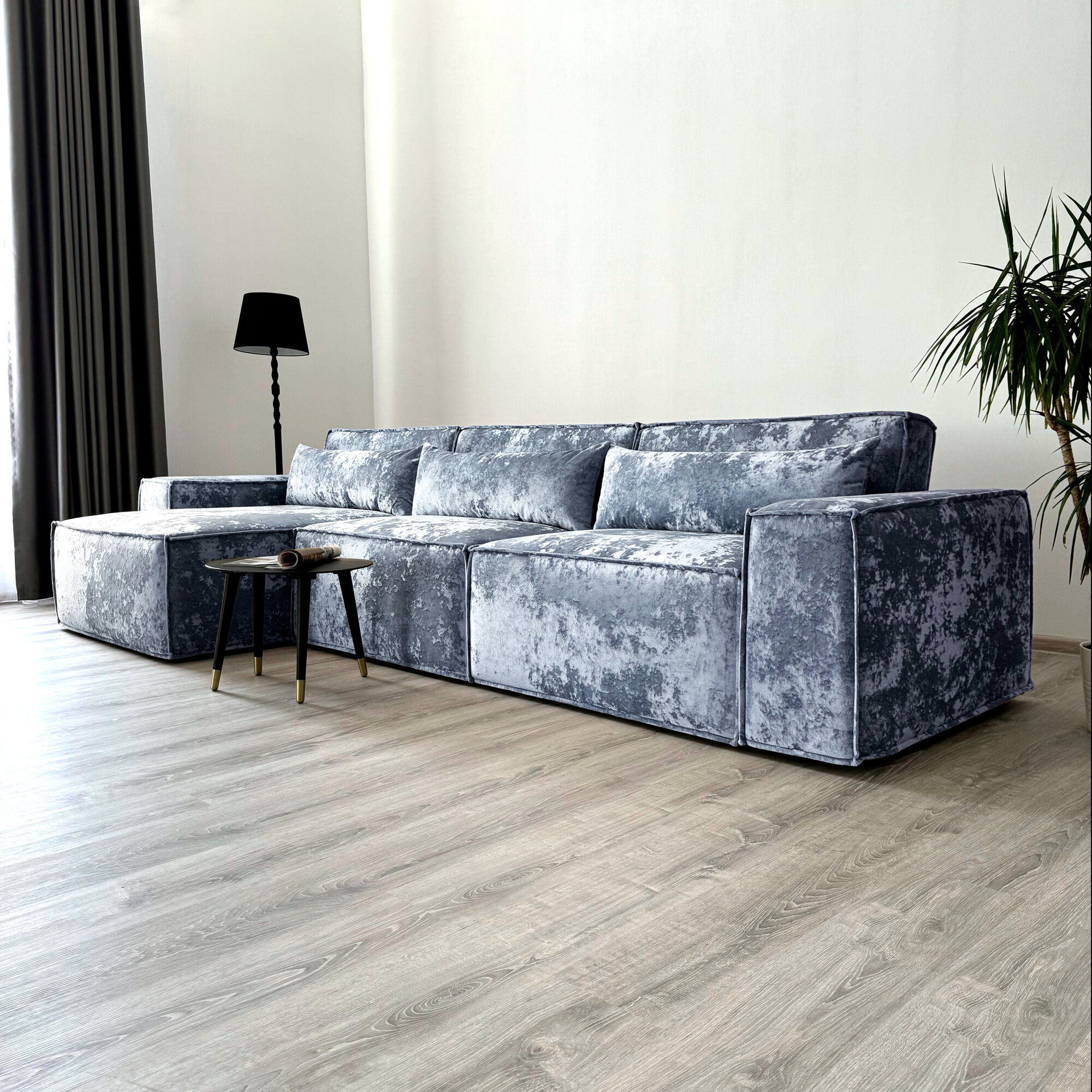 Диван-кровать Redsofa Пикассо 360 см серебристый Ocean. Раскладной угловой диван со съемными чехлами, для дома и офиса (Мебельный гарнитур бытового назначения)