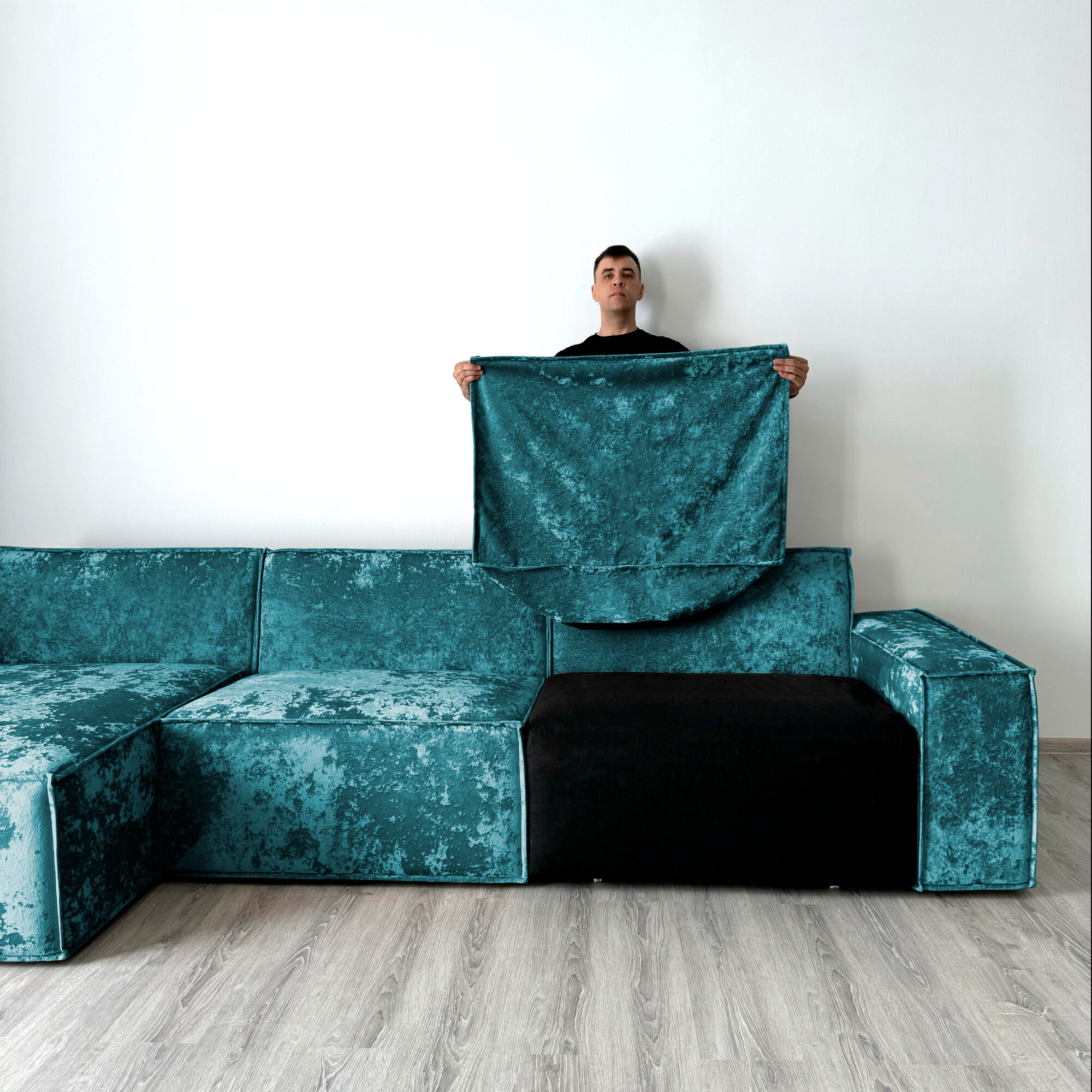 Диван-кровать Redsofa Пикассо 360 см бирюзовый Teddi. Раскладной угловой диван со съемными чехлами, для дома и офиса (Мебельный гарнитур бытового назначения)