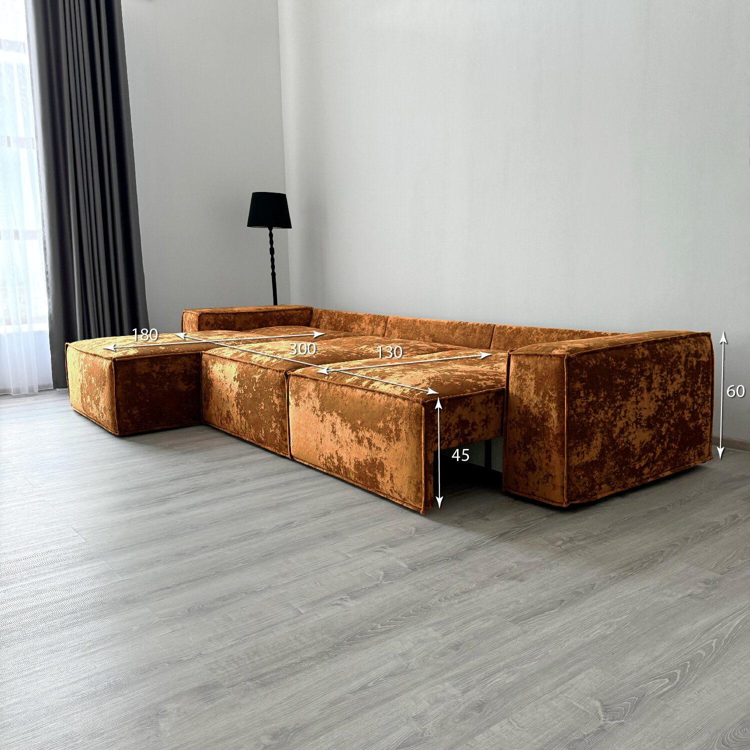Купить Диван-кровать Redsofa Пикассо 360 см охра Ocean. Раскладной угловой диван со съемными чехлами, для дома и офиса (Мебельный гарнитур бытового назначения)