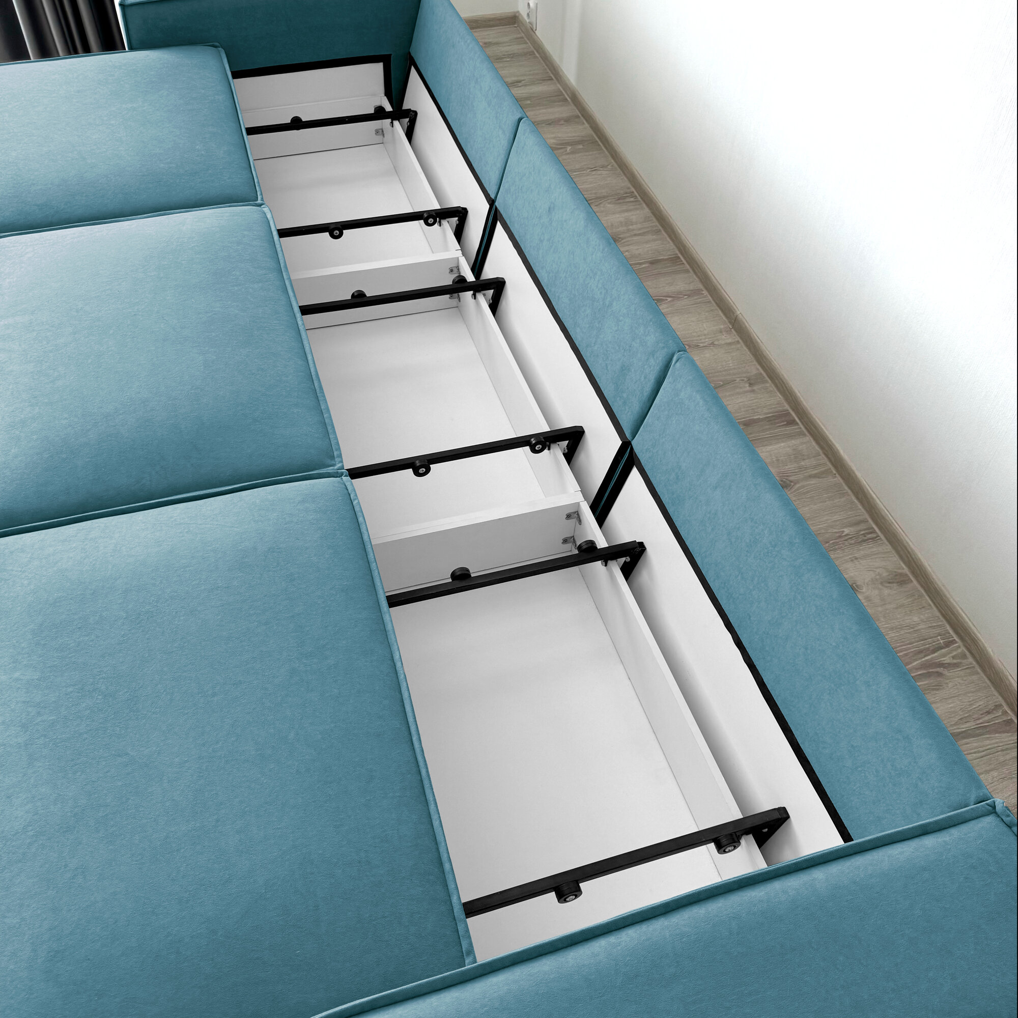 Диван-кровать Redsofa Пикассо 360 см аквамарин Ocean. Раскладной угловой диван со съемными чехлами, для дома и офиса (Мебельный гарнитур бытового назначения)