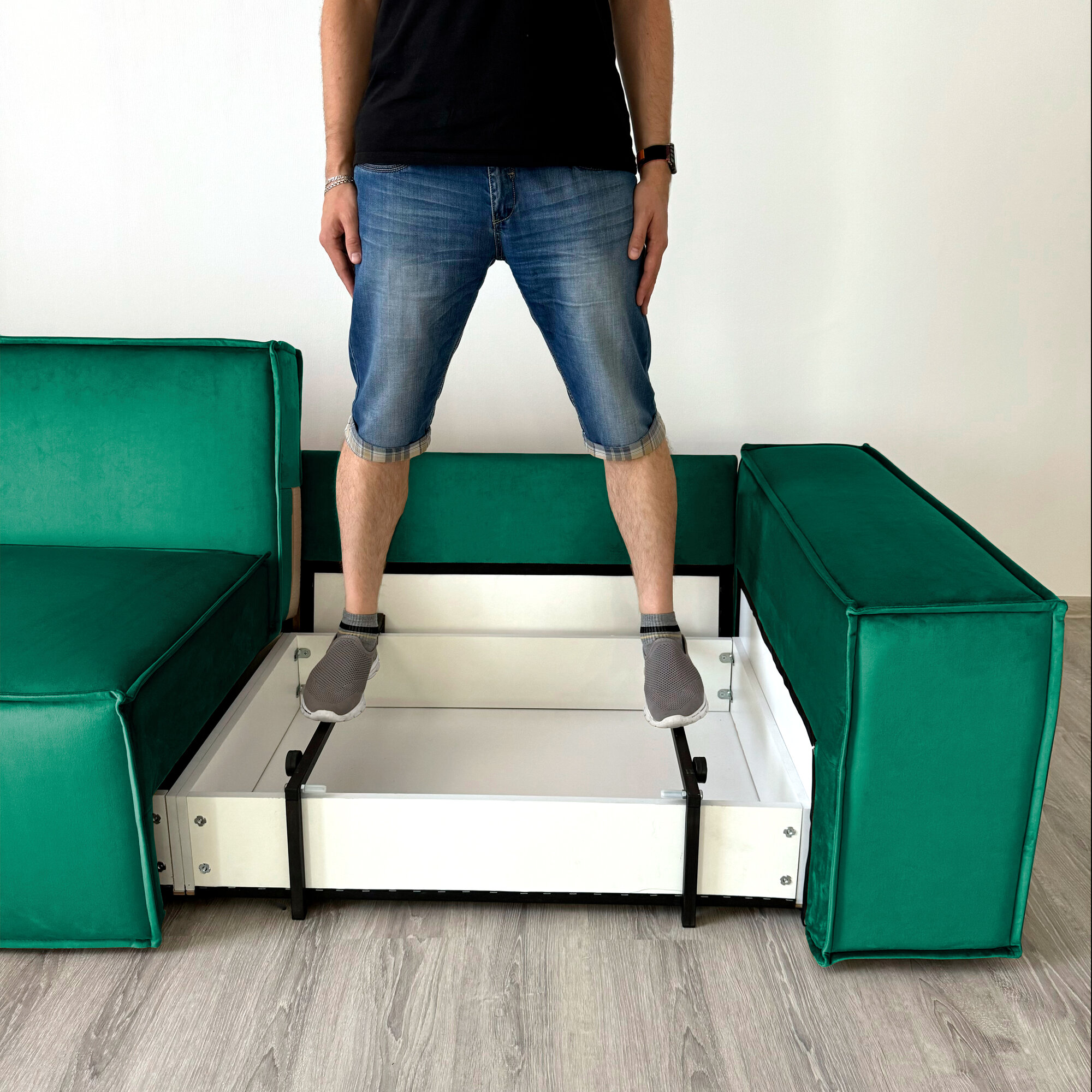 Купить Диван-кровать Redsofa Пикассо 360 см изумрудный waterproof. Раскладной угловой диван со съемными чехлами, для дома и офиса.