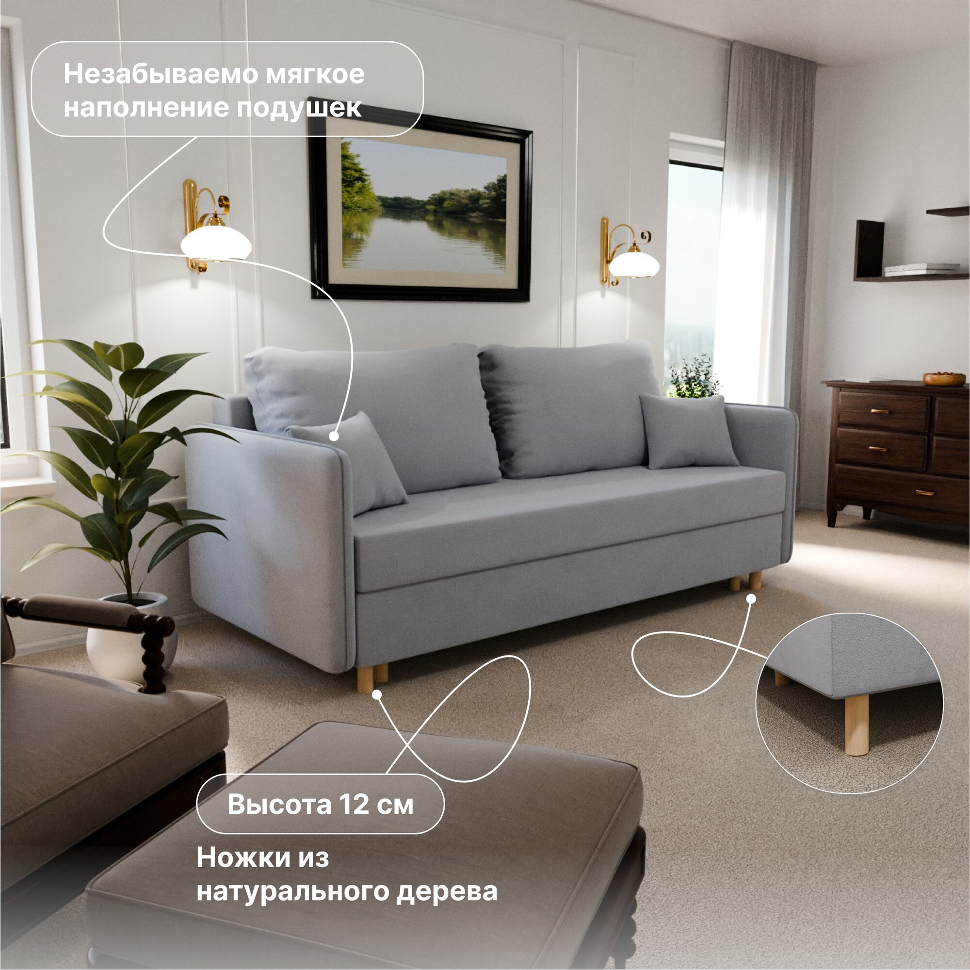 Купить Диван раскладной, "Comforta", НПБ, Велютта люкс 50 размеры 210х80х100, светло-серый