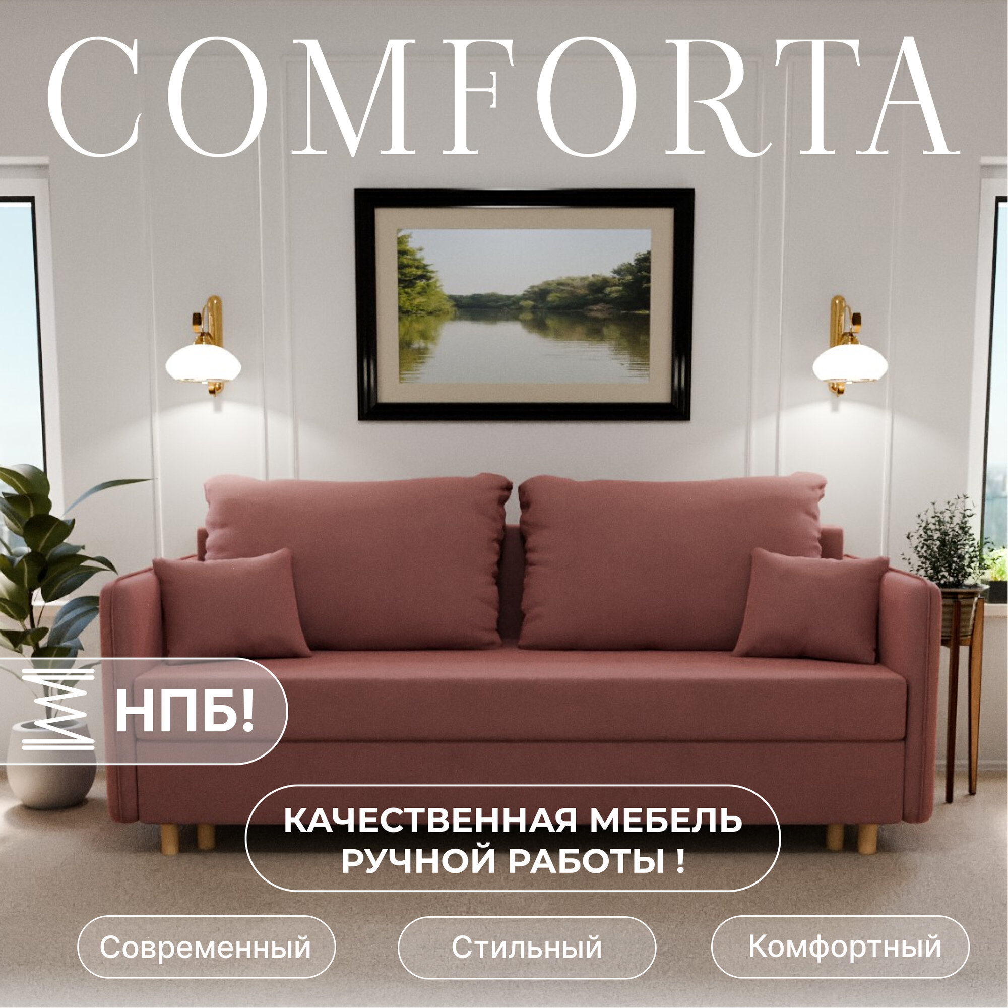Купить Диван раскладной, "Comforta", НПБ, Велютта люкс 62 размеры 210х80х100, розовый