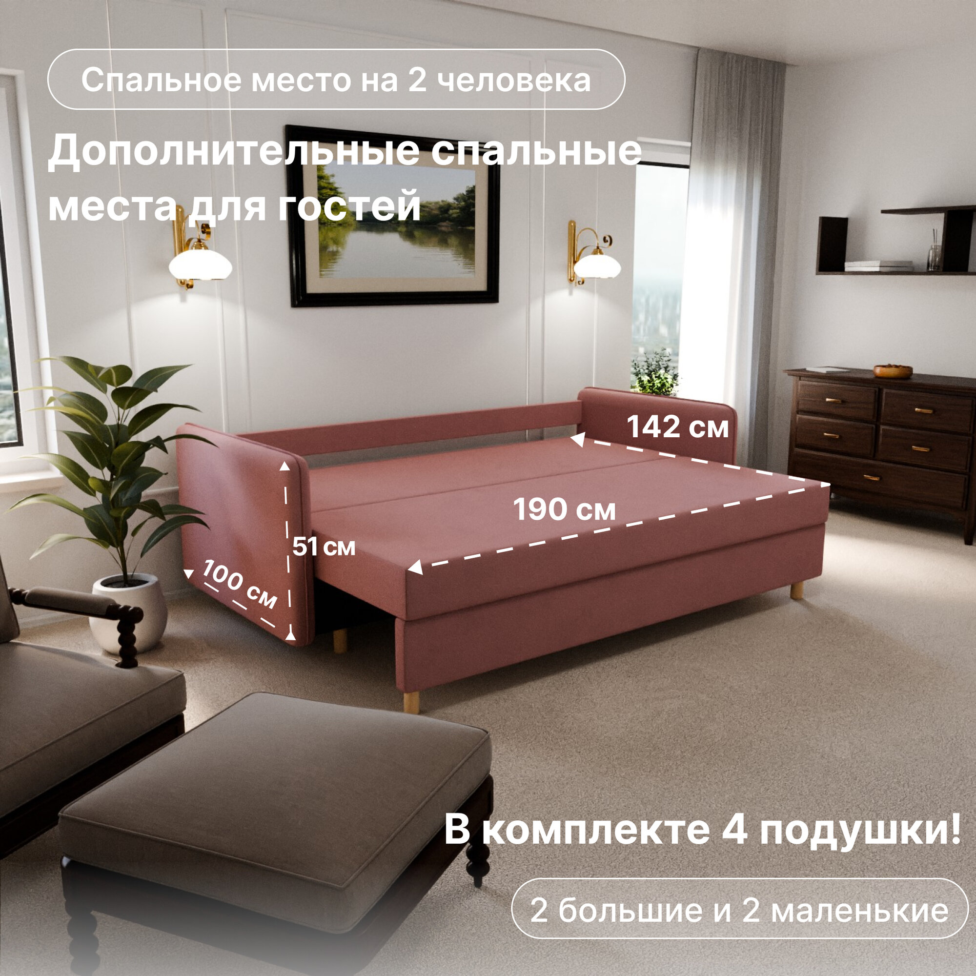 СохранитьДиван раскладной, "Comforta", НПБ, Велютта люкс 62 размеры 210х80х100, розовый интересное: