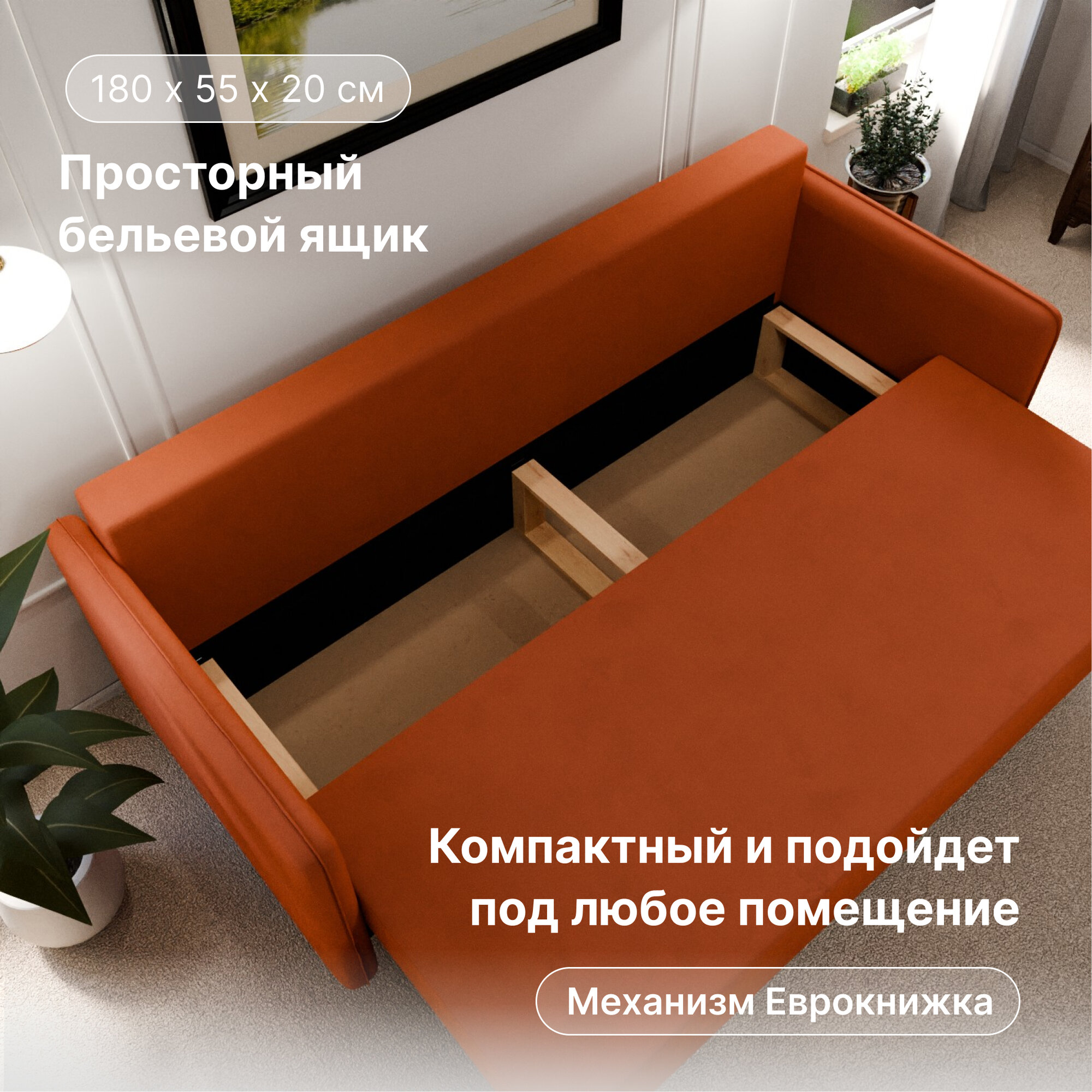 СохранитьДиван раскладной, "Comforta", НПБ, Велютта люкс 58 размеры 210х80х100, оранжевый интересное: