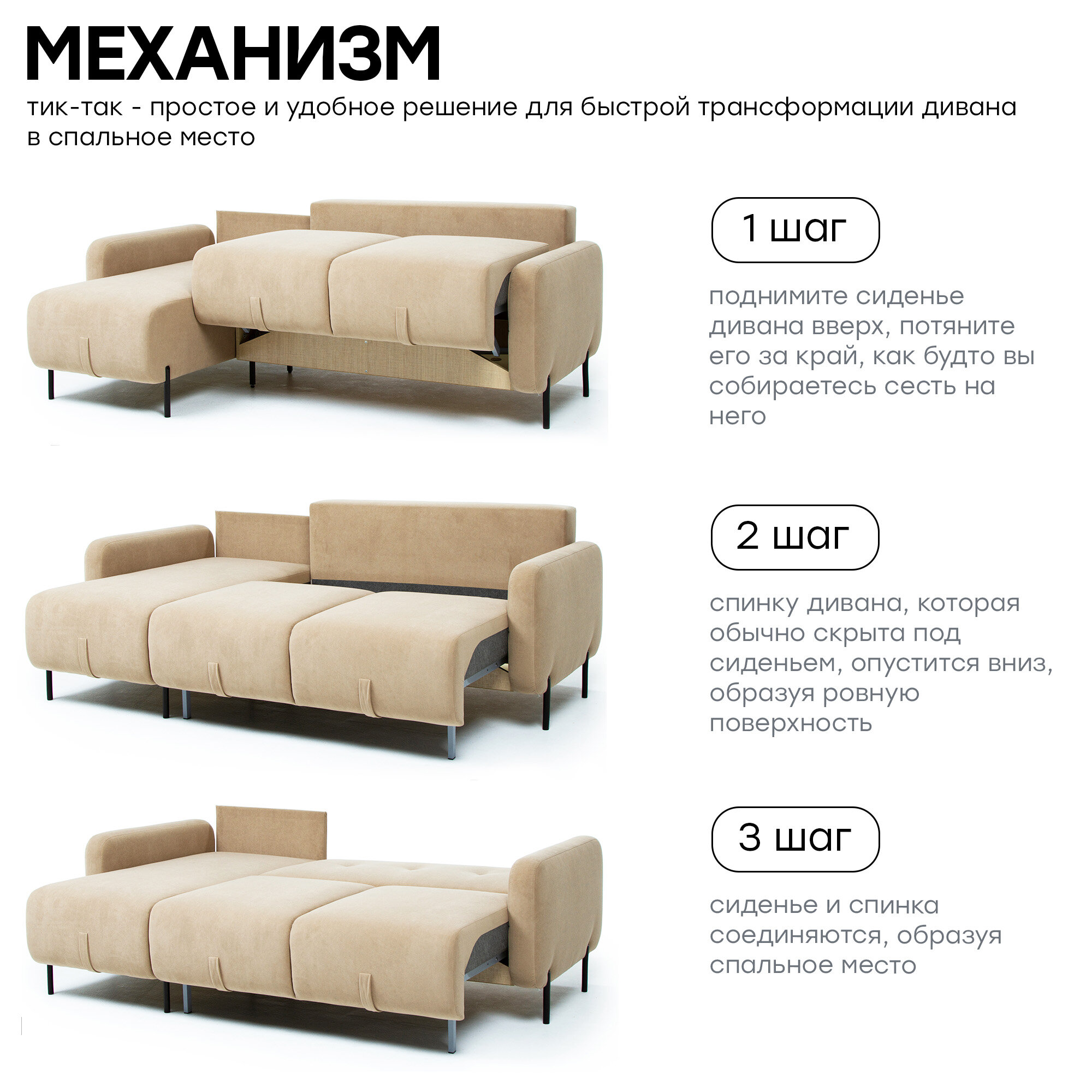 Угловой диван кровать на металлических ножках Скай угол 220 х 135 х 97 цвет латте интересное: