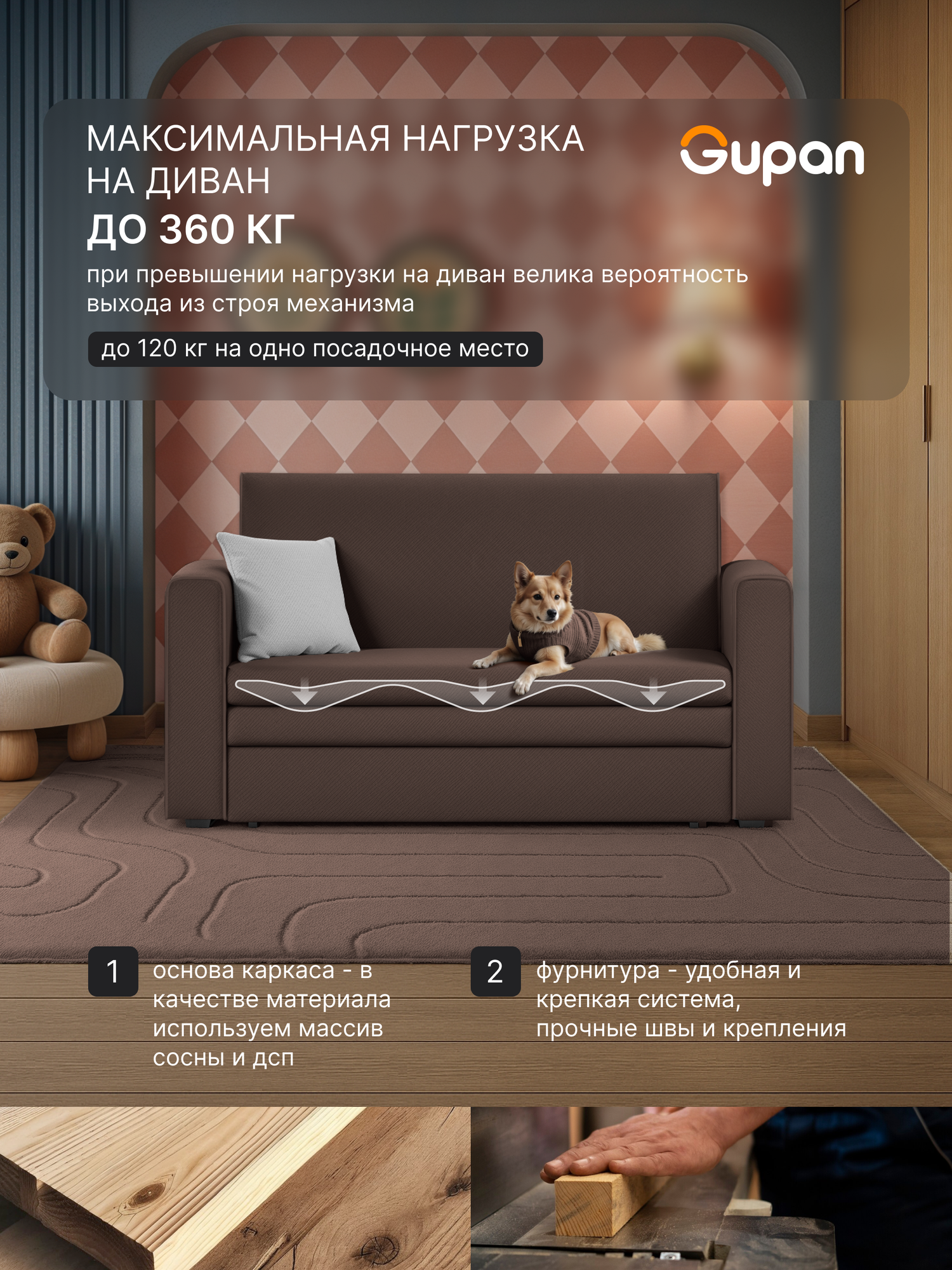 СохранитьДиван кровать Gupan Санта Хит Велюр Amigo Coffee, раскладной, механизм выкатной, беспружинный интересное: