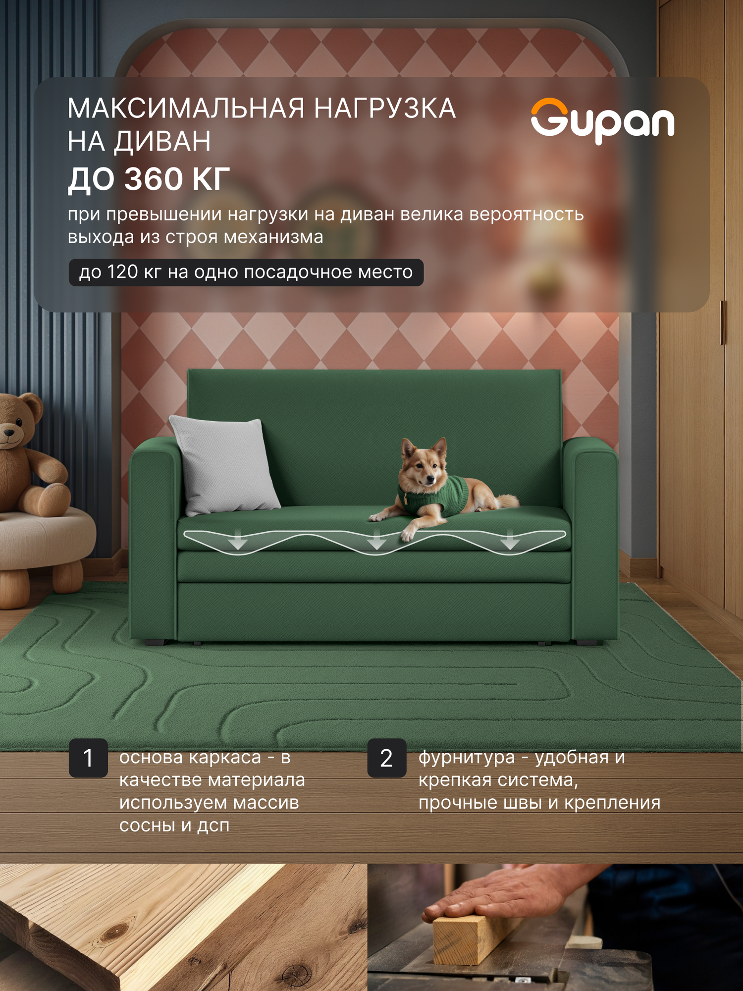 СохранитьДиван кровать Gupan Санта Хит Велюр Amigo Green, раскладной, механизм выкатной, беспружинный интересное: