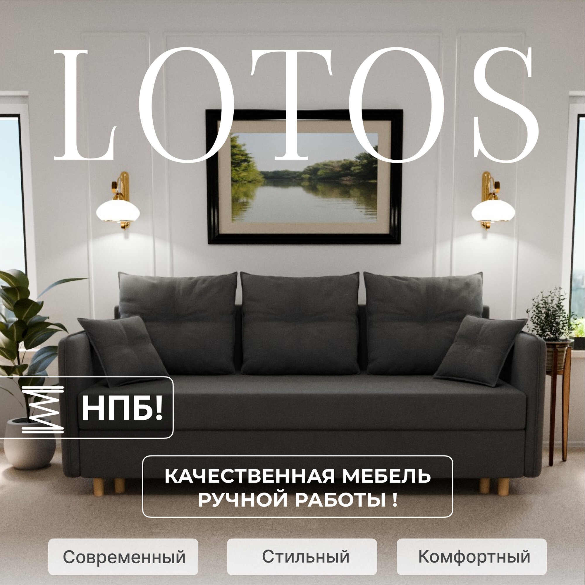 Купить Диван раскладной, "Lotos", НПБ, Велютта люкс 32 размеры 210х80х100, серый