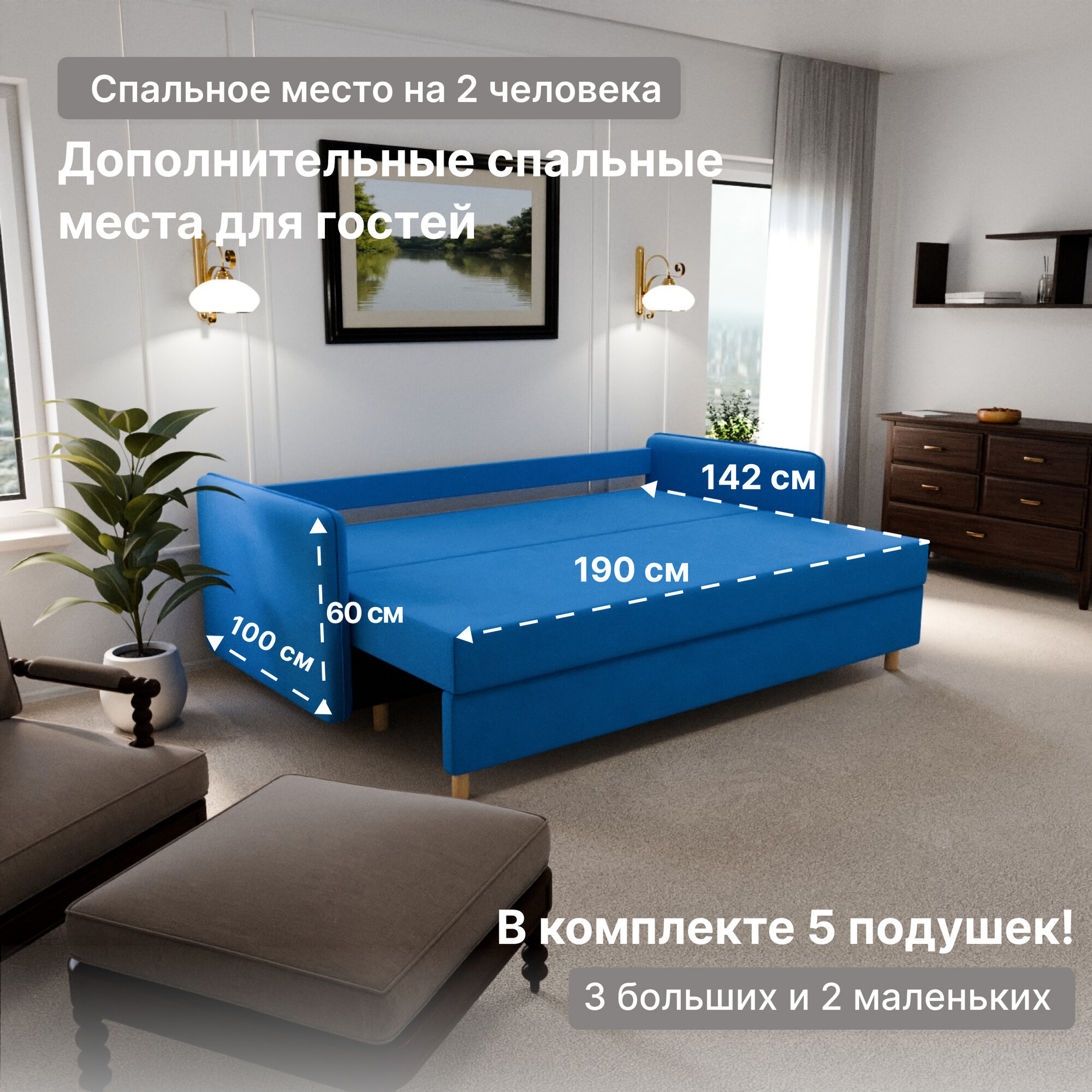 Диван раскладной, "Lotos", НПБ, Велютта люкс 26 размеры 210х80х100, синий