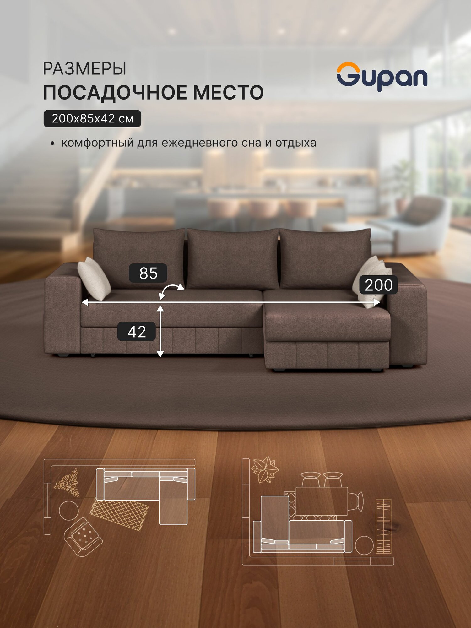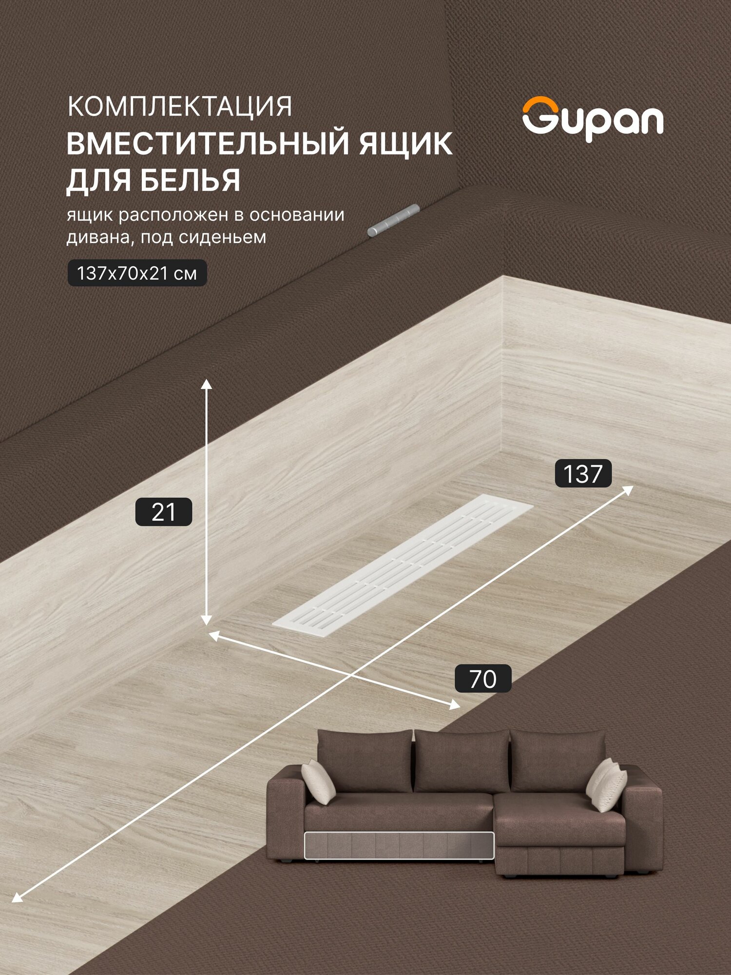 СохранитьДиван угловой Gupan Майами Велюр Amigo Brown, раскладной, механизм еврокнижка, беспружинный, с ящиком для белья интересное: