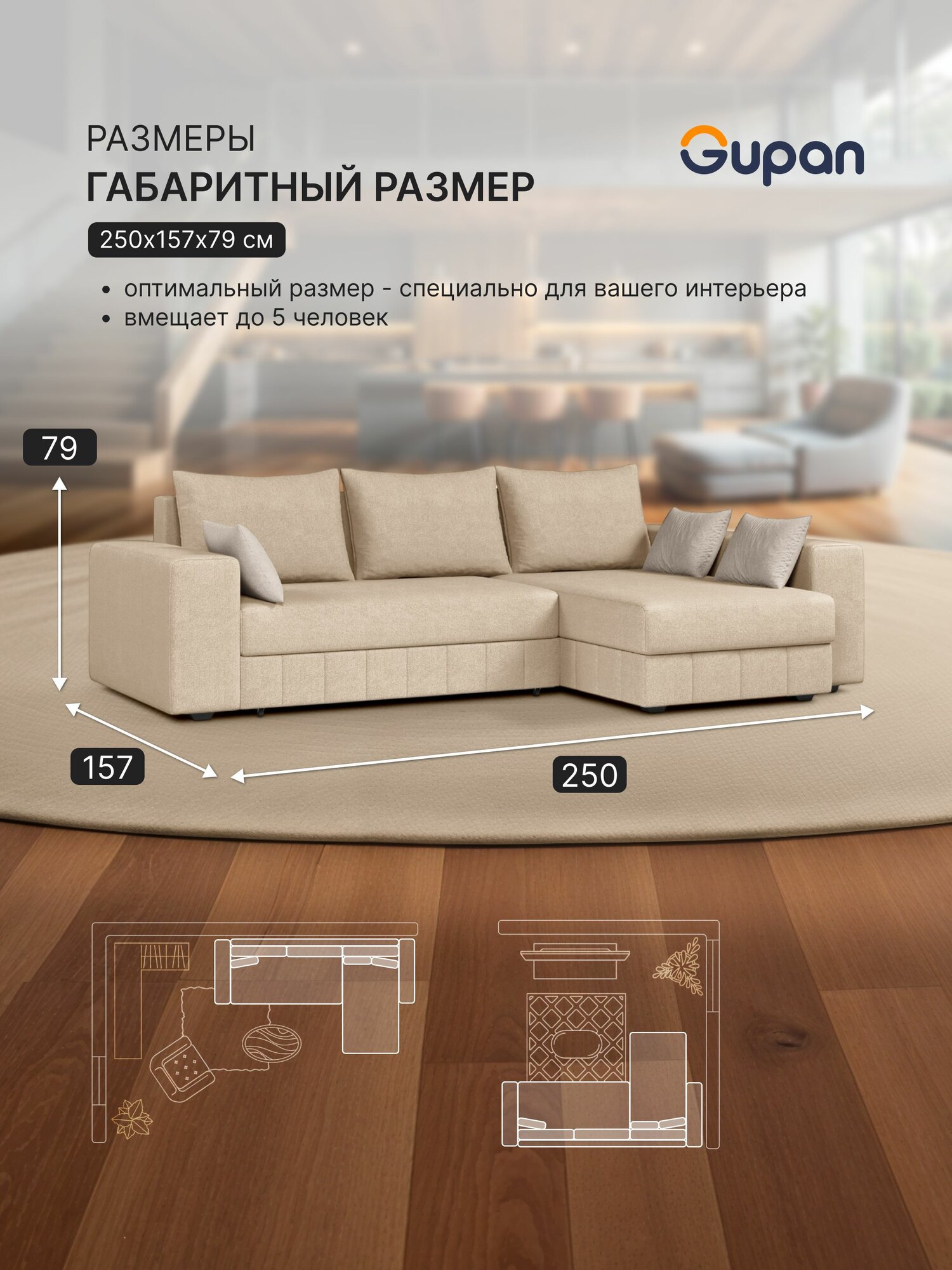 СохранитьДиван угловой Gupan Майами Велюр Amigo Bone, раскладной, механизм еврокнижка, беспружинный, с ящиком для белья интересное: