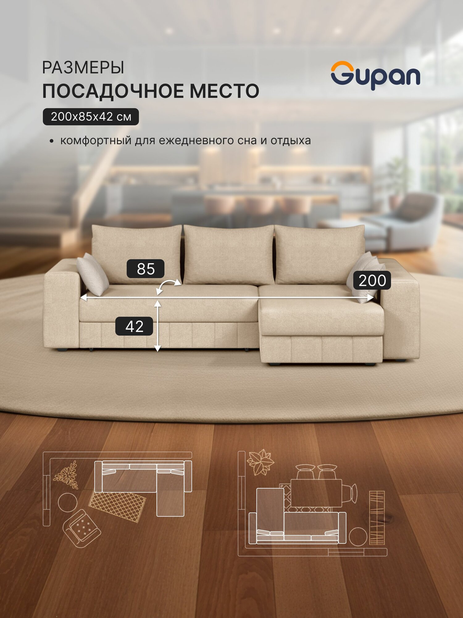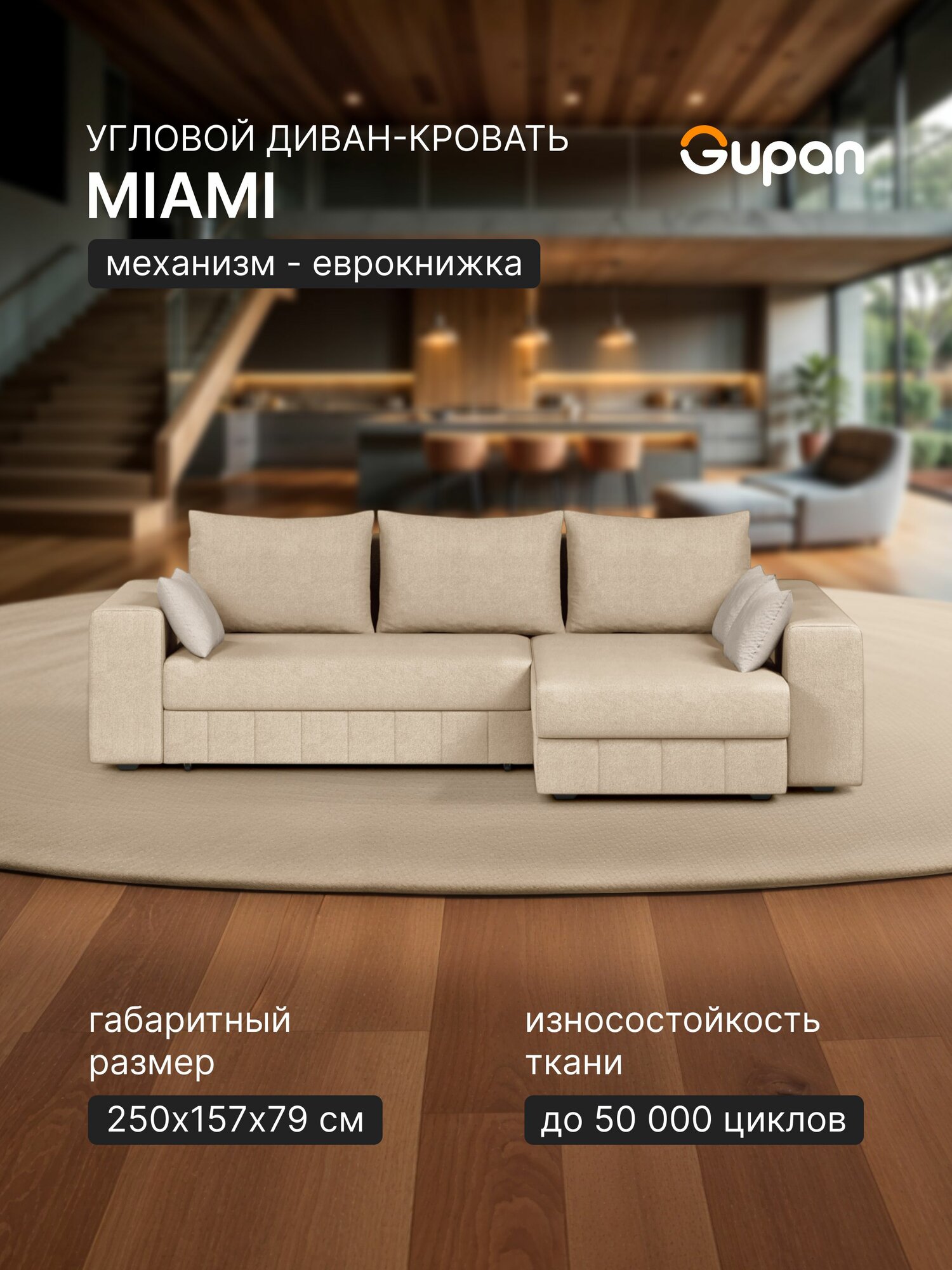 Диван угловой Gupan Майами Велюр Amigo Beige, раскладной, механизм еврокнижка, беспружинный, с ящиком для белья