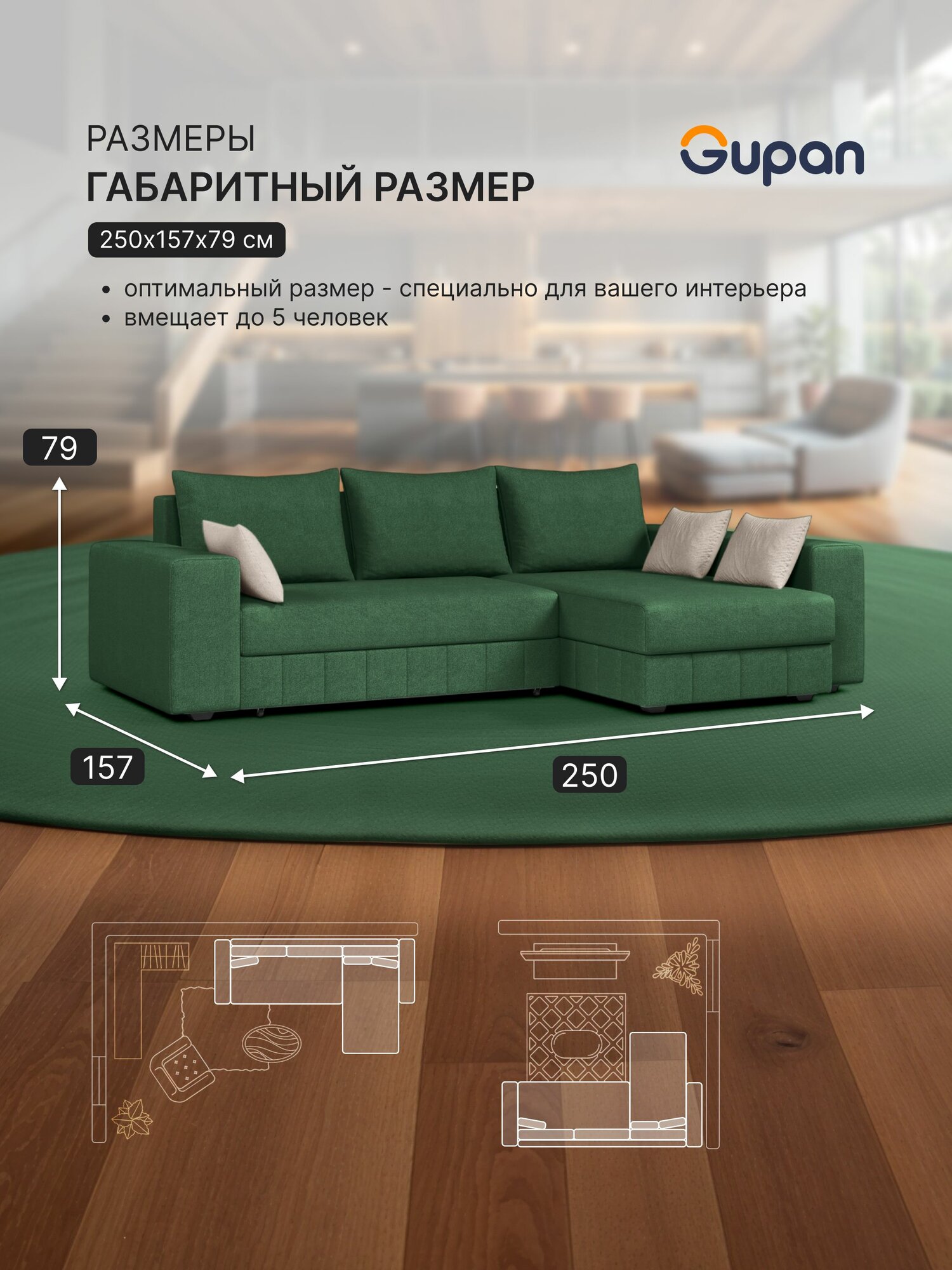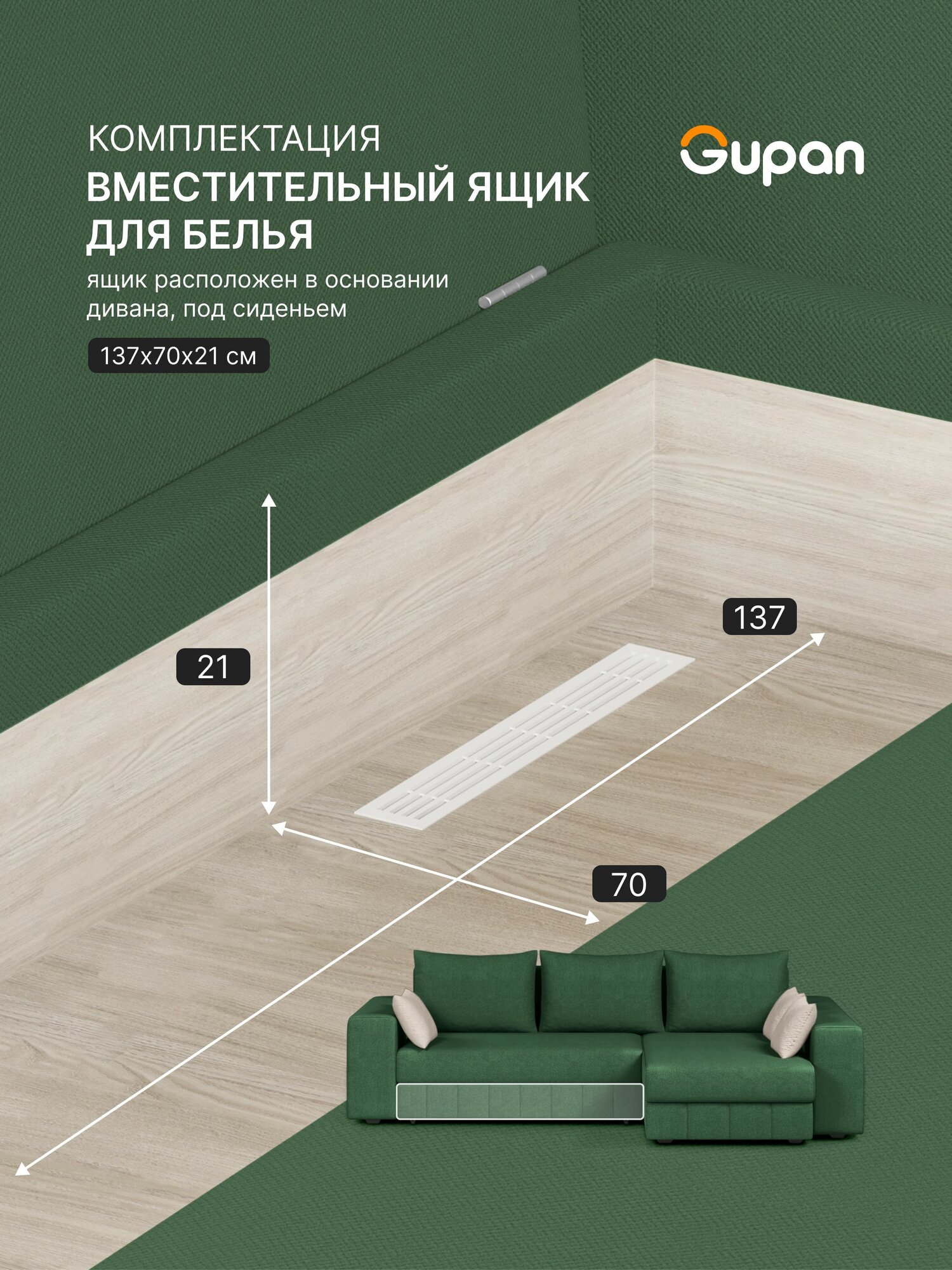 СохранитьДиван угловой Gupan Майами Велюр Amigo Green, раскладной, механизм еврокнижка, беспружинный, с ящиком для белья интересное: