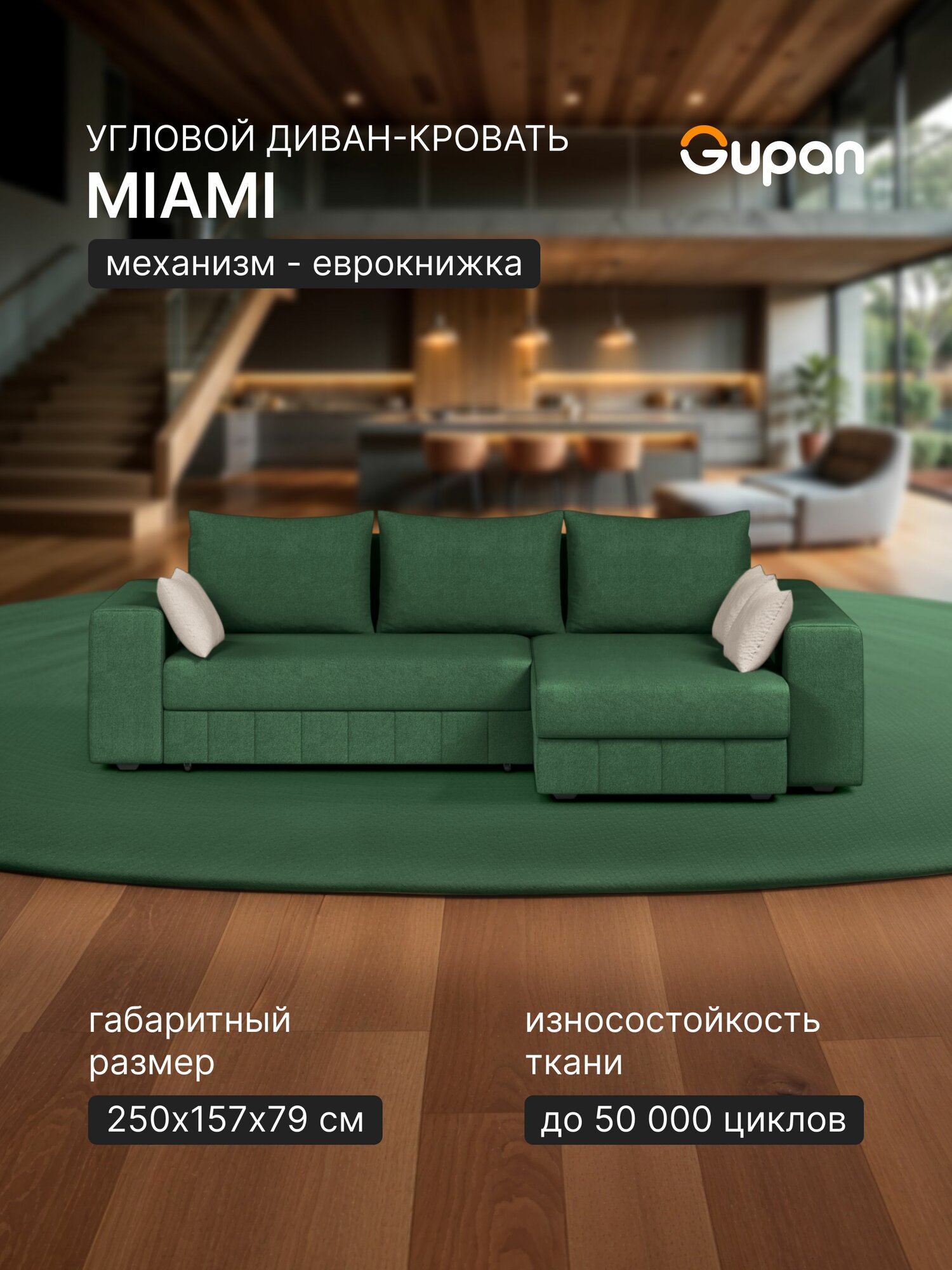 Купить Диван угловой Gupan Майами Велюр Amigo Green, раскладной, механизм еврокнижка, беспружинный, с ящиком для белья