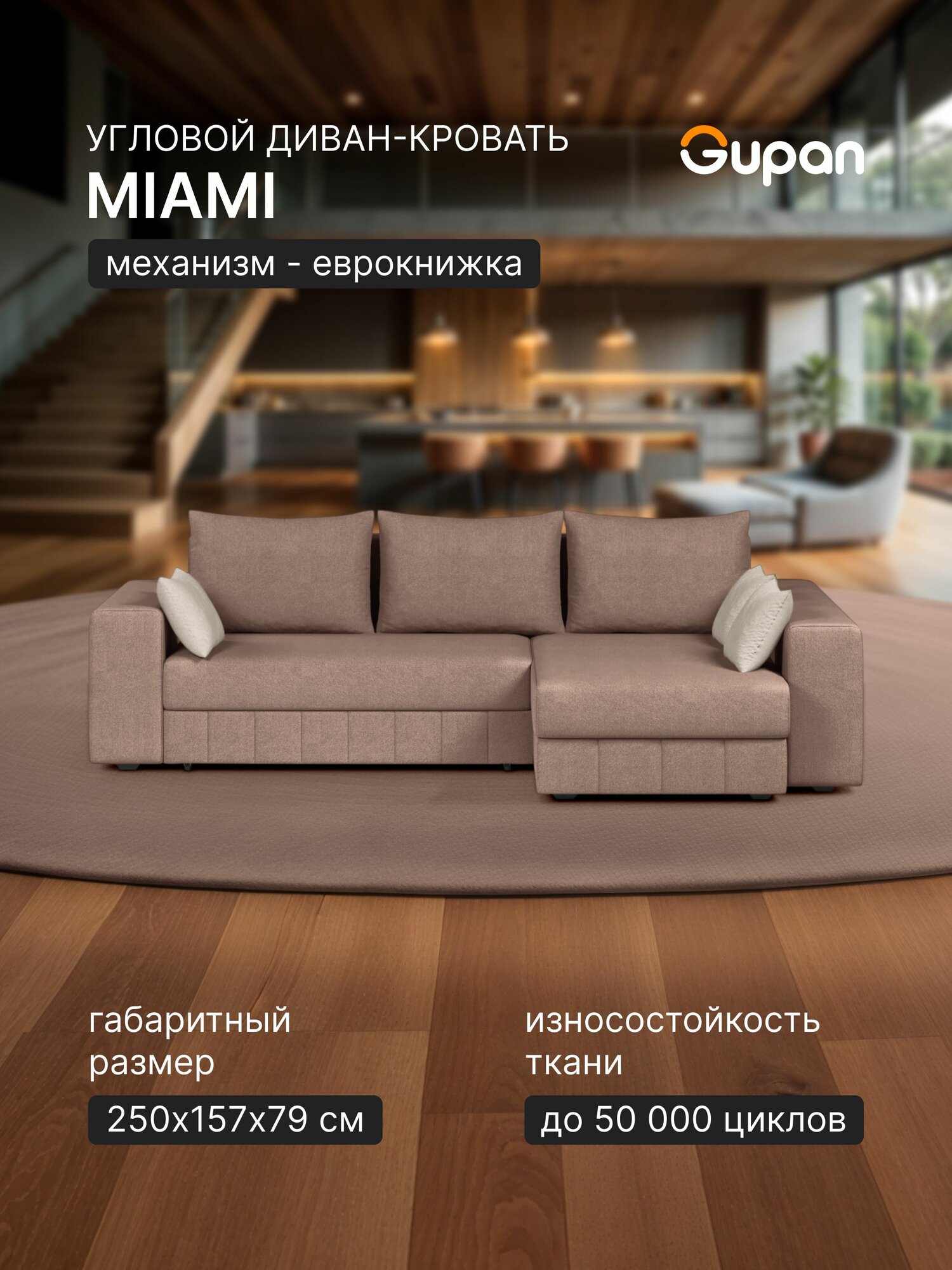 СохранитьДиван угловой Gupan Майами Велюр Amigo Cocoa, раскладной, механизм еврокнижка, беспружинный, с ящиком для белья интересное:
