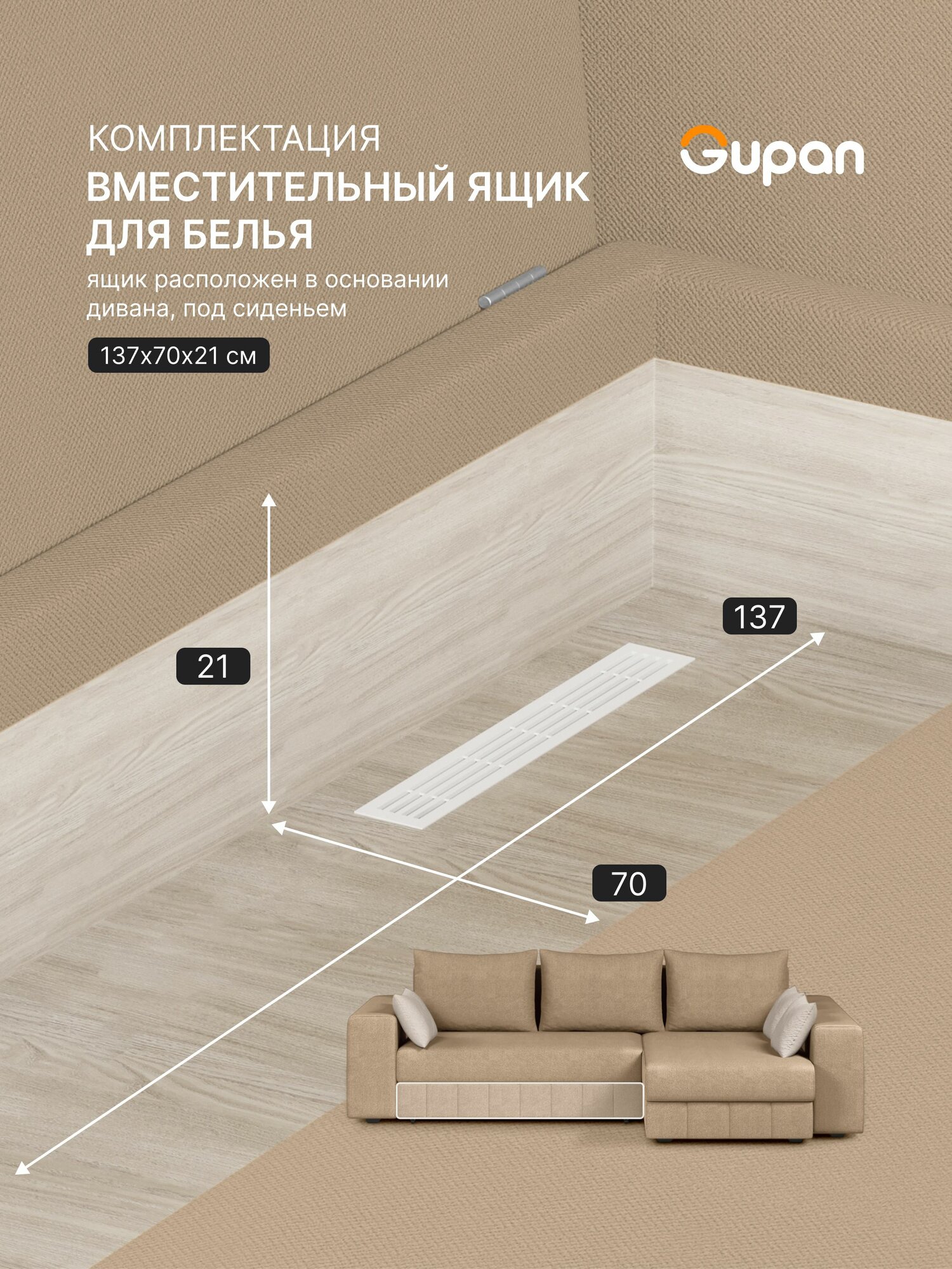 СохранитьДиван угловой Gupan Майами Велюр Amigo Beige, раскладной, механизм еврокнижка, беспружинный, с ящиком для белья интересное: