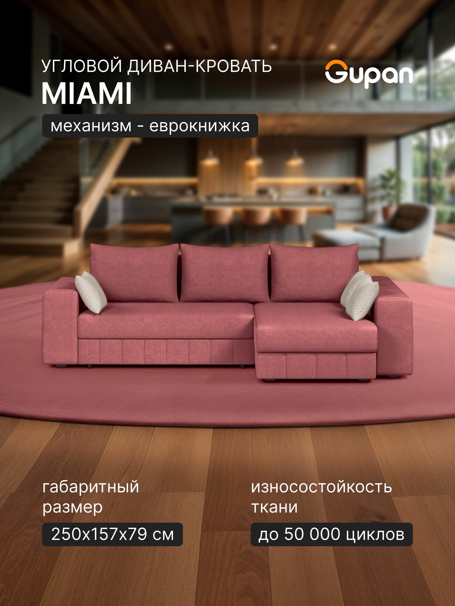 СохранитьДиван угловой Gupan Майами Велюр Amigo Berry, раскладной, механизм еврокнижка, беспружинный, с ящиком для белья интересное: