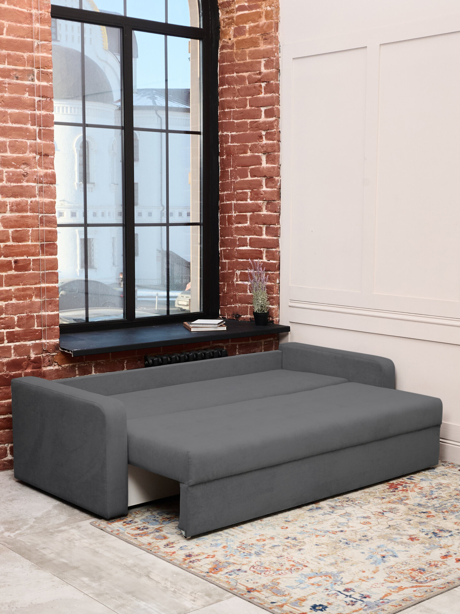 Диван-кровать раскладной двухместный Денди, механизм Еврокнижка, велюр антивандальный, 225*77*100, цвет графит. интересное: