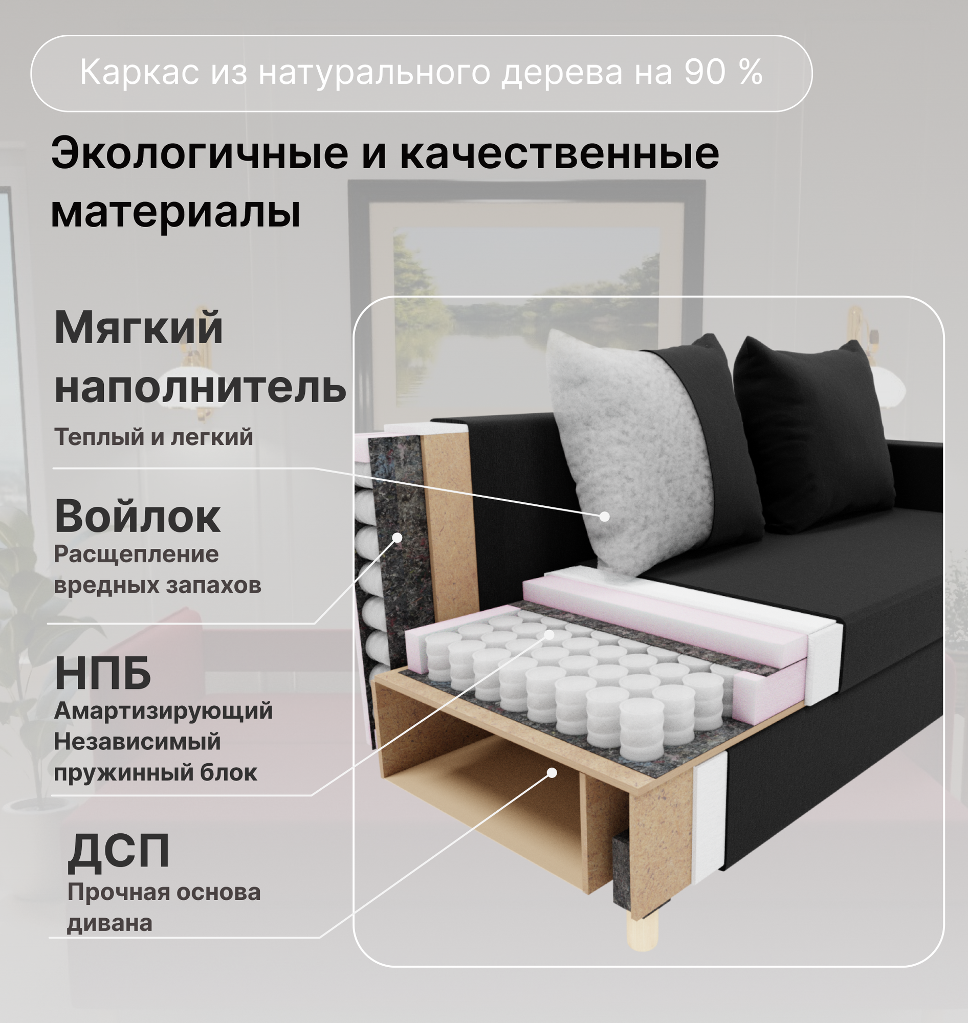 СохранитьДиван раскладной, "Garmonia", НПБ, Велютта люкс 99 размеры 220х80х100, черный интересное: