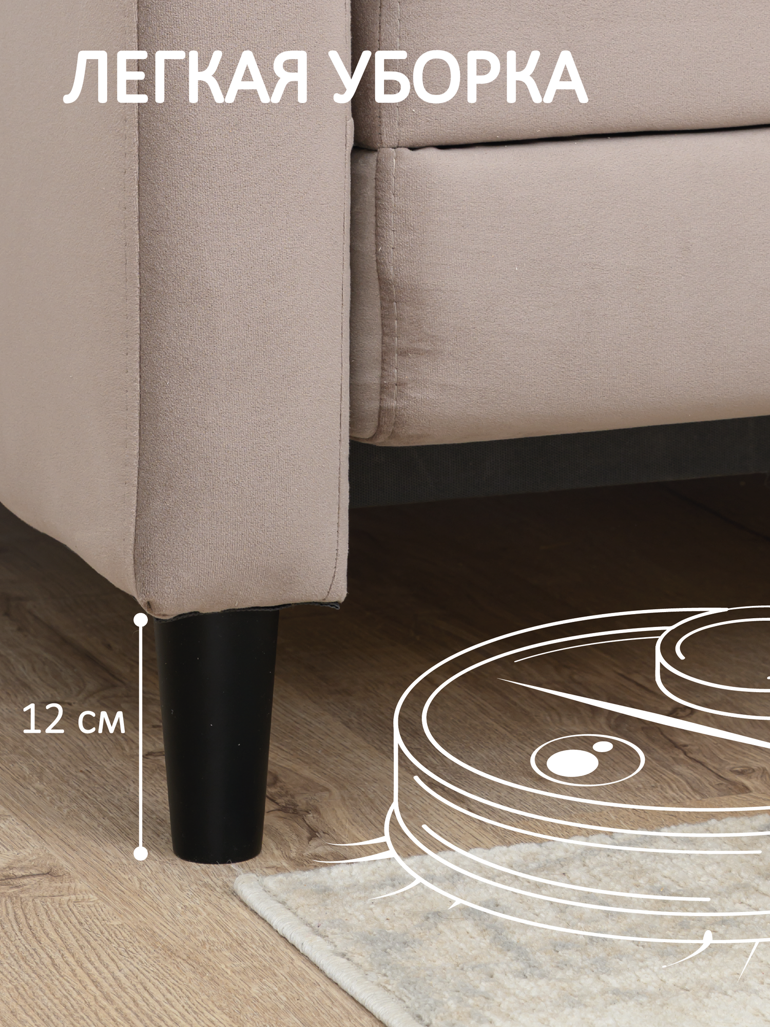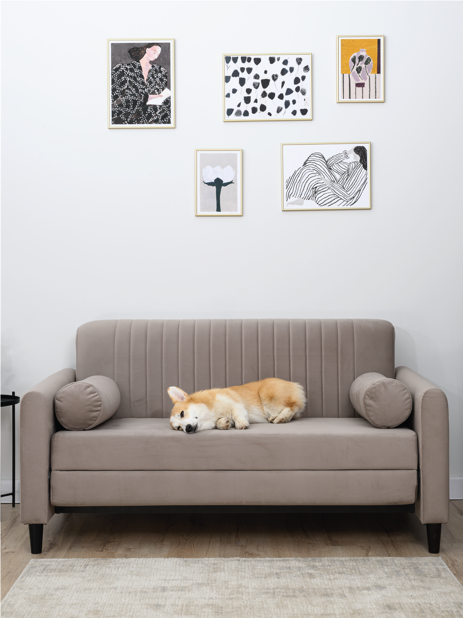 Купить Диван-кровать Romack "Виктория", антивандальный, раскладной, мокко микровелюровая обивка, 140x200x83 см