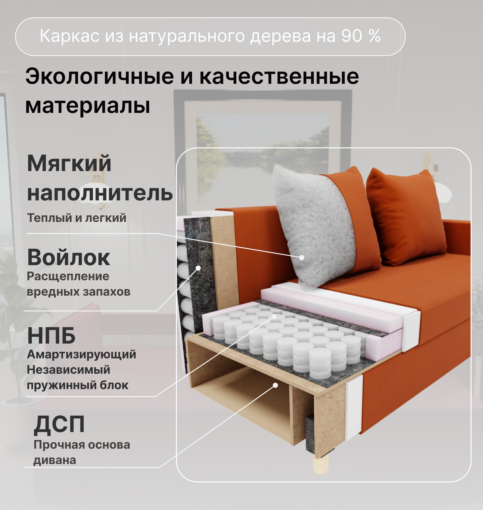 СохранитьДиван раскладной, "Genri", НПБ, Велютта люкс 58 размеры 220х80х100, оранжевый интересное: