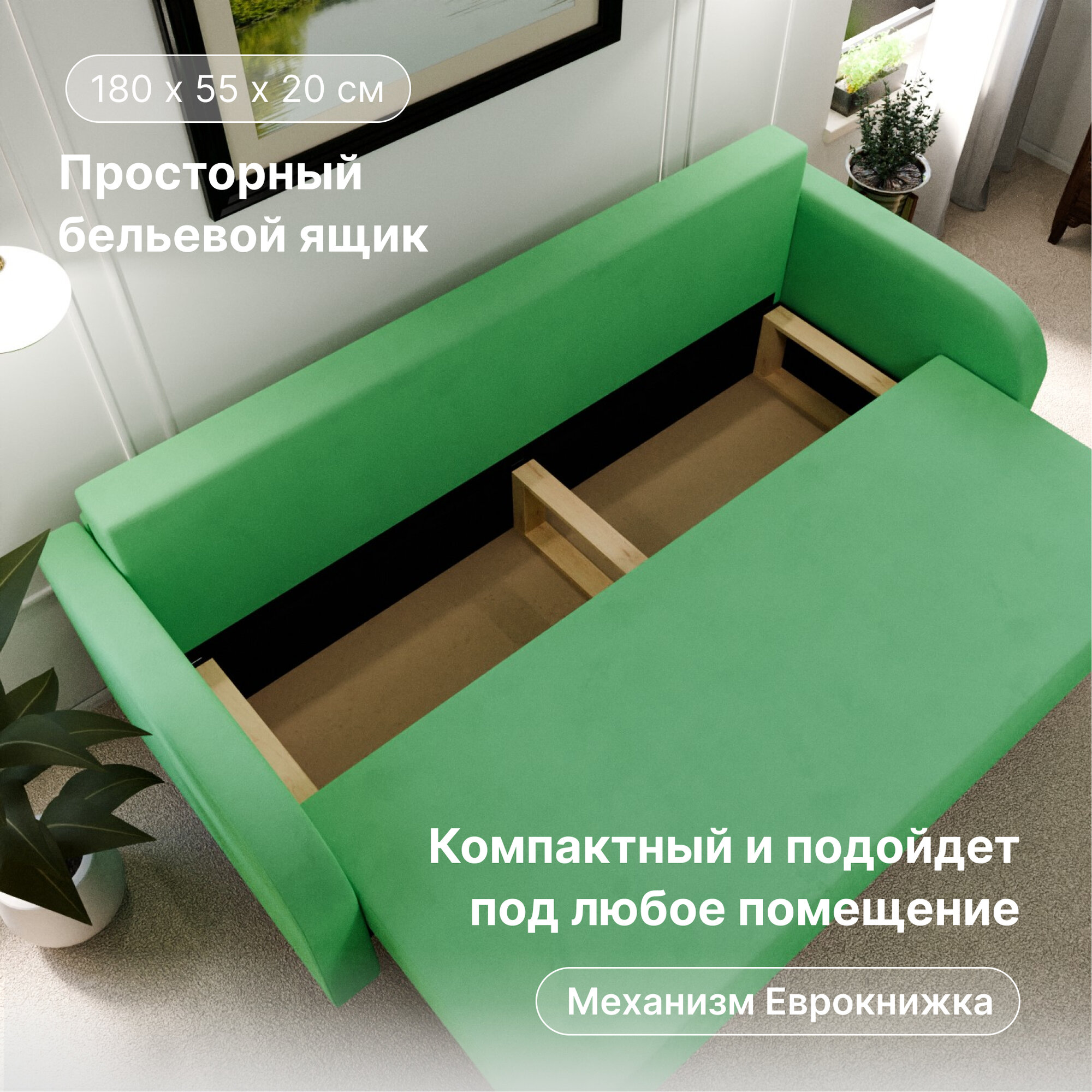 Диван раскладной, "Genri", НПБ, Велютта люкс 33 размеры 220х80х100, зеленый