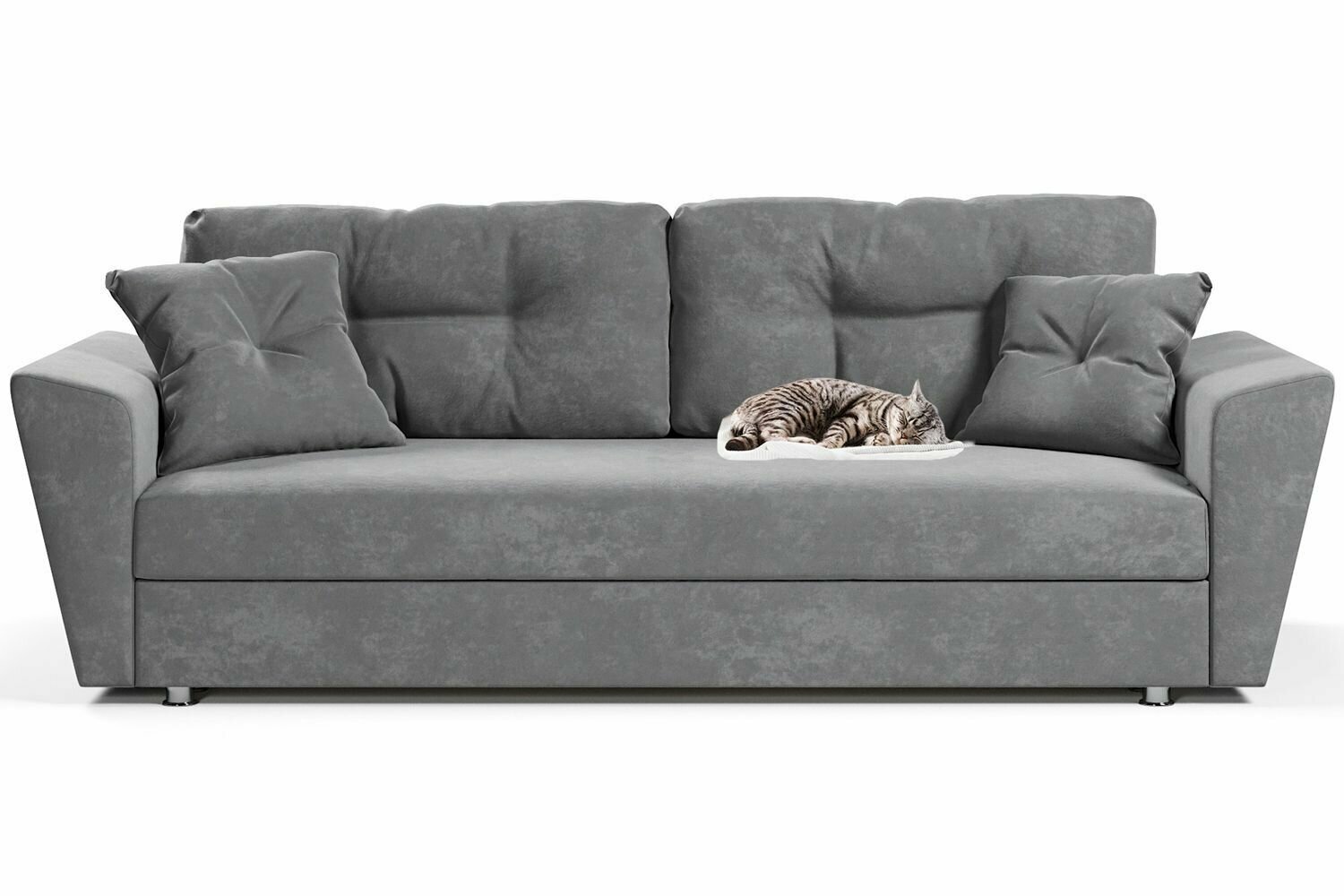 Диван прямой раскладной Амстердам М еврокнижка, серый и бежевый велюр, подушки серые