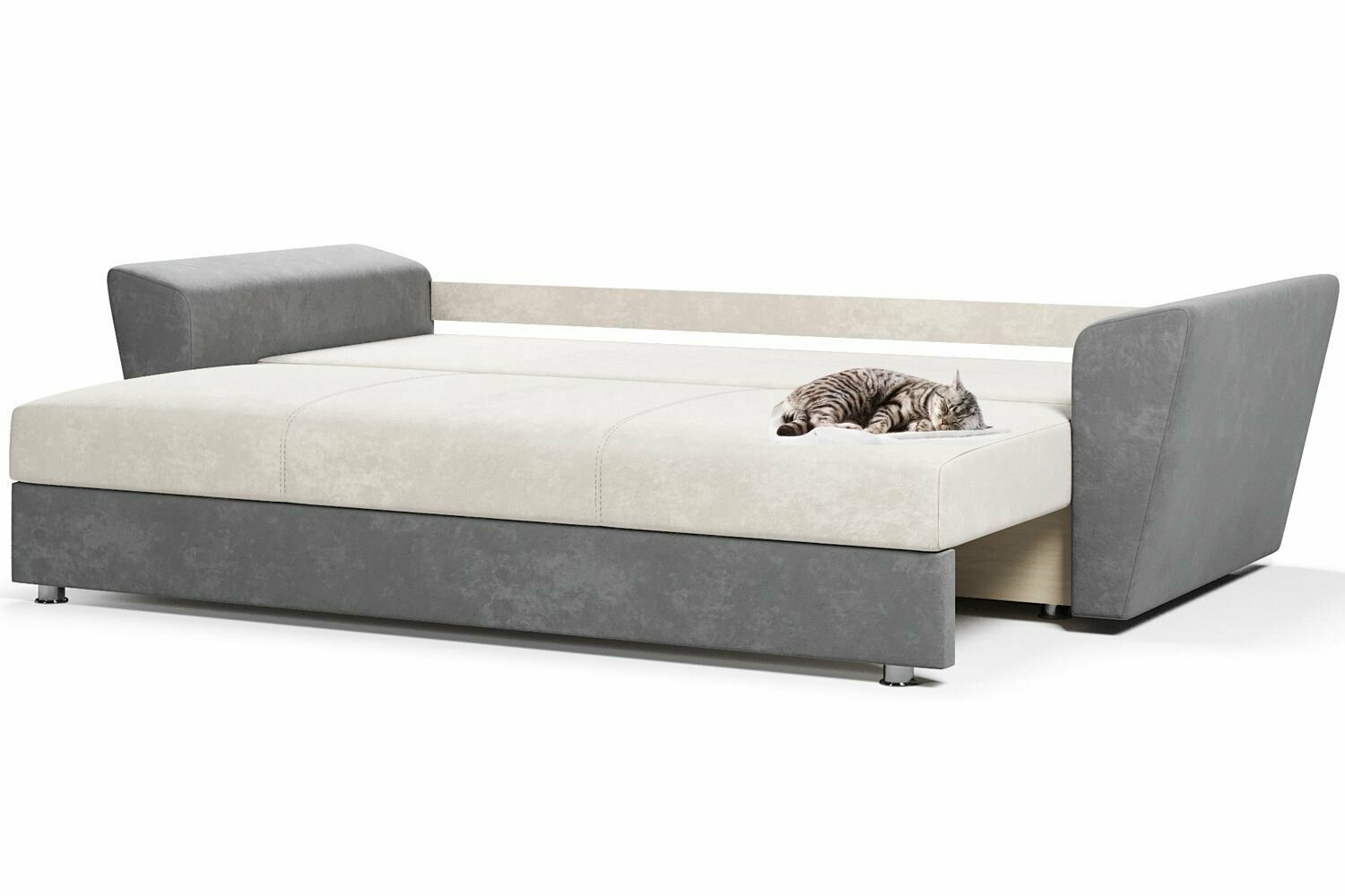 Купить Диван кровать раскладной, прямой, Амстердам М, еврокнижка, серый и бежевый велюр