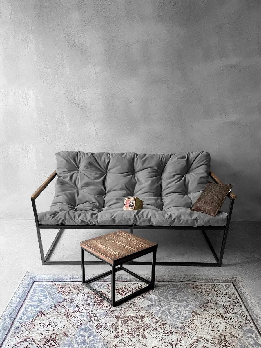Диван мягкий удобный для отдыха, уличный, на балкон, на веранду, в стиле лофт, минимализм, Слэш + велюр серый