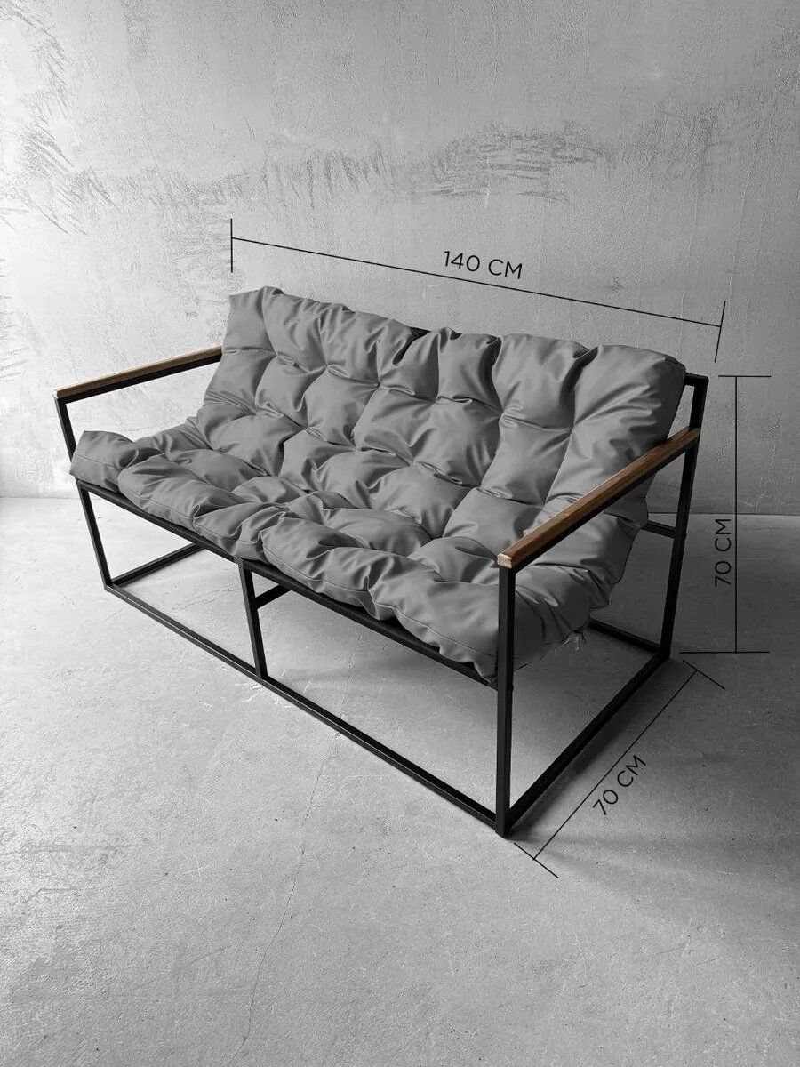 Диван мягкий удобный для отдыха, уличный, на балкон, на веранду, в стиле лофт, минимализм, Комфи ++ кожзам серый интересное: