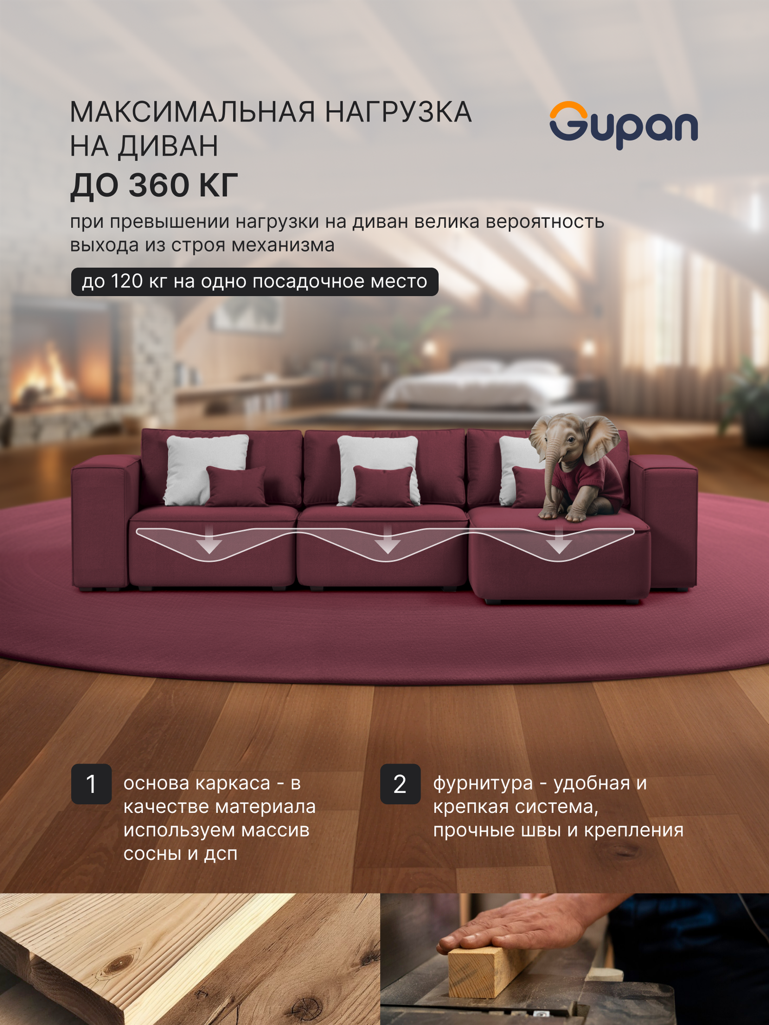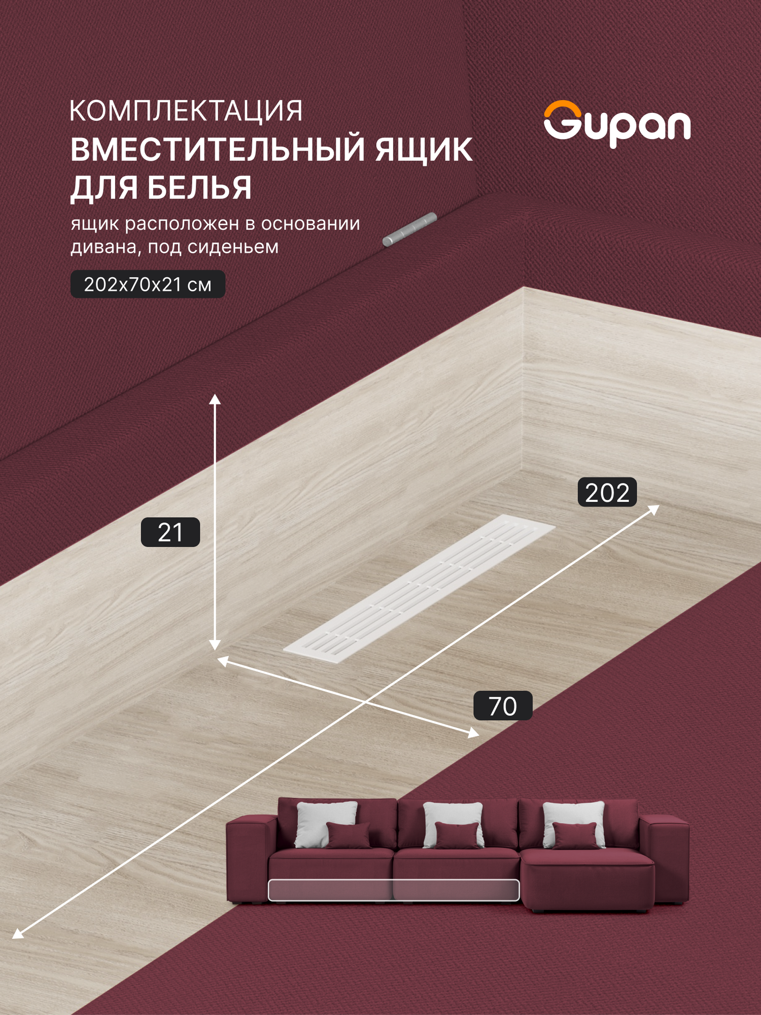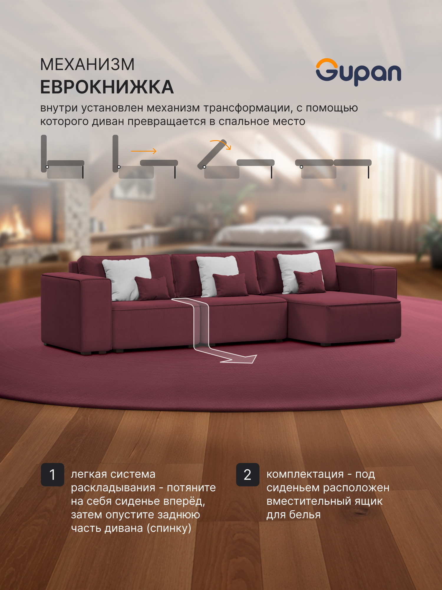 Диван угловой Gupan Фабио / Лофт Велюр Amigo Berry, раскладной, механизм еврокнижка, беспружинный, с ящиком для белья