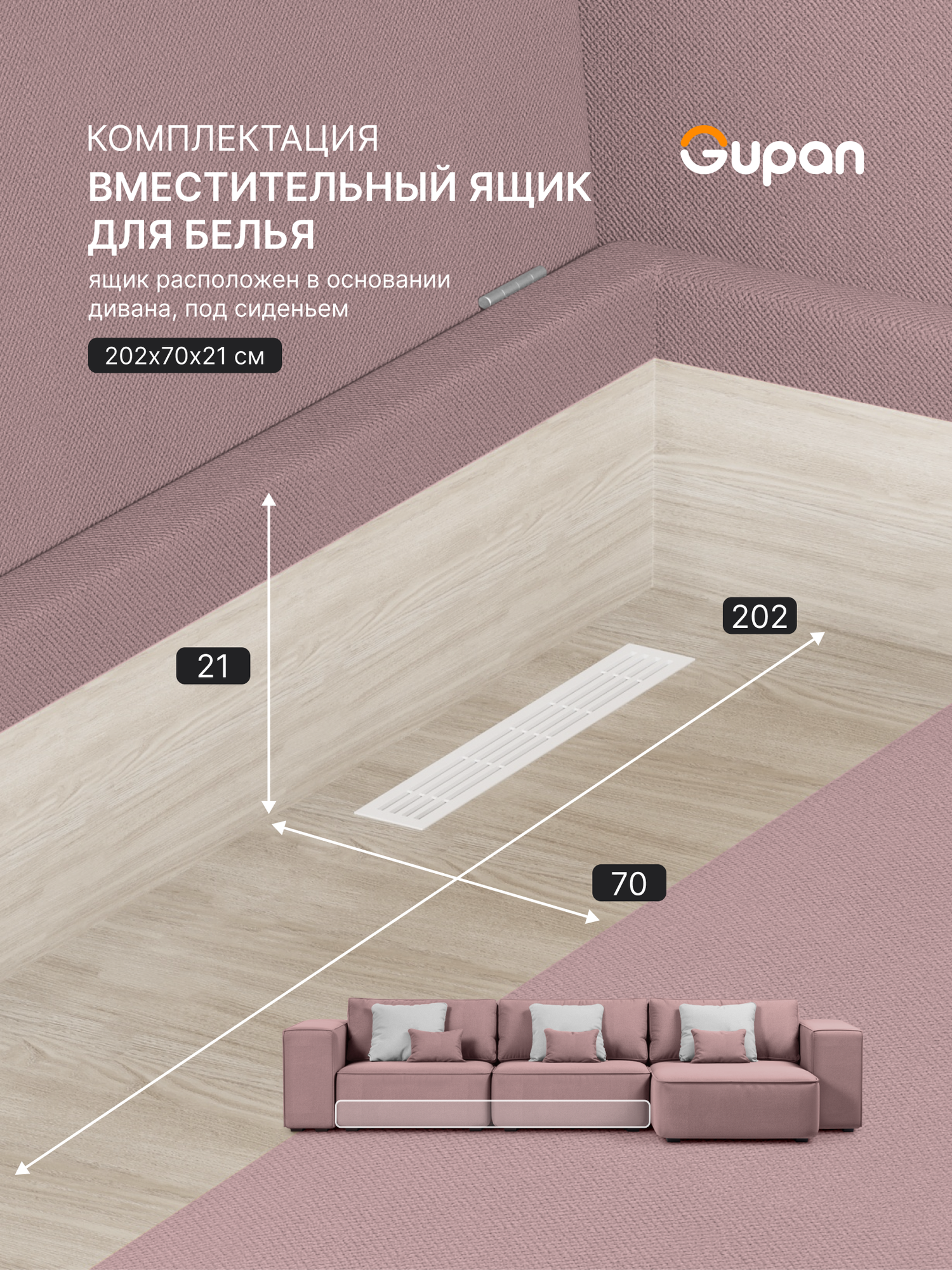 Диван угловой Gupan Фабио / Лофт Велюр Amigo Dimrose, раскладной, механизм еврокнижка, беспружинный, с ящиком для белья
