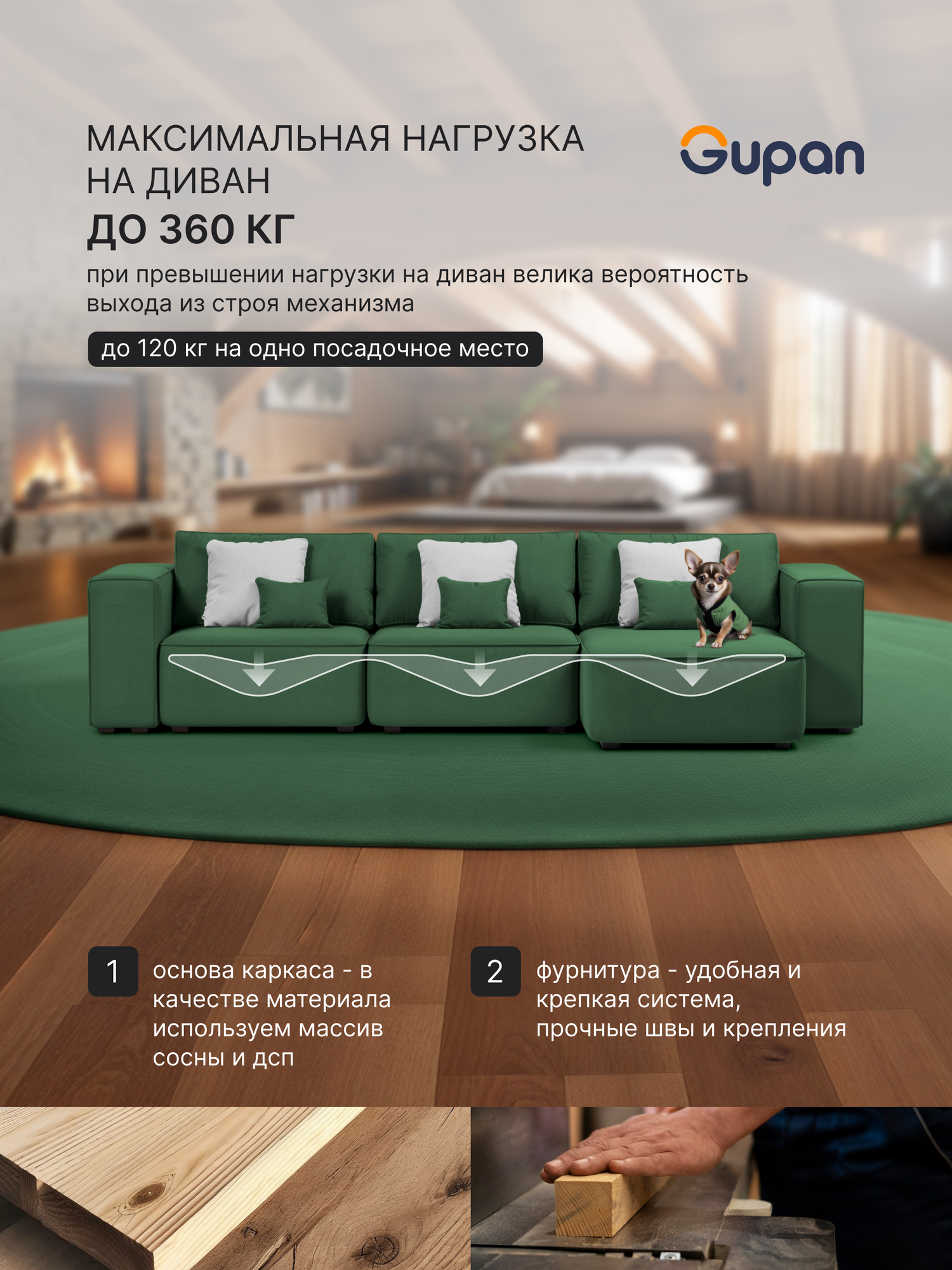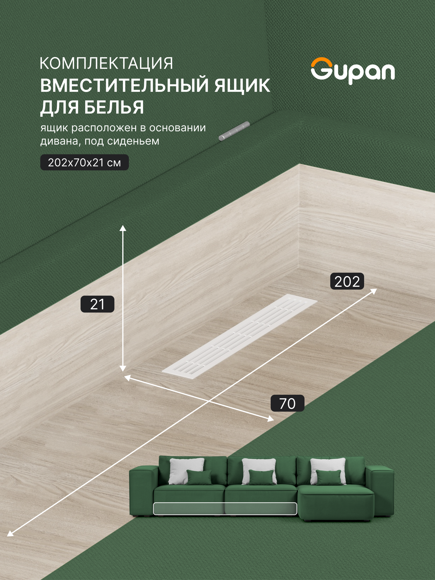 СохранитьДиван угловой Gupan Фабио / Лофт Велюр Amigo Green, раскладной, механизм еврокнижка, беспружинный, с ящиком для белья интересное: